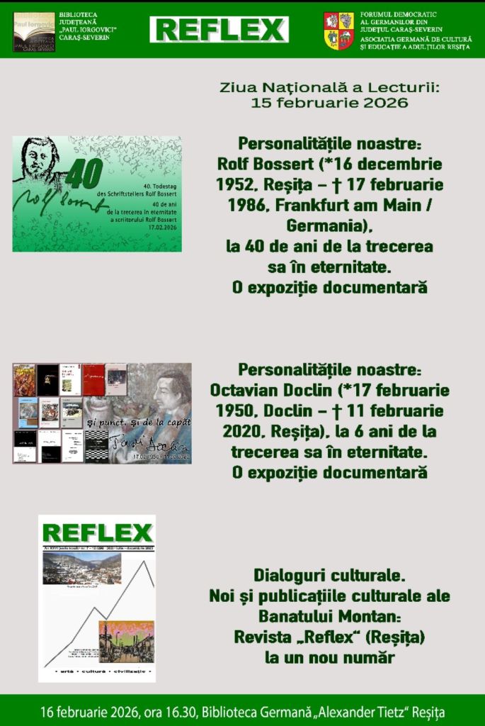 15 februarie 2026, ora 15.30, Biblioteca Germană „Alexander Tietz“ Reșița: