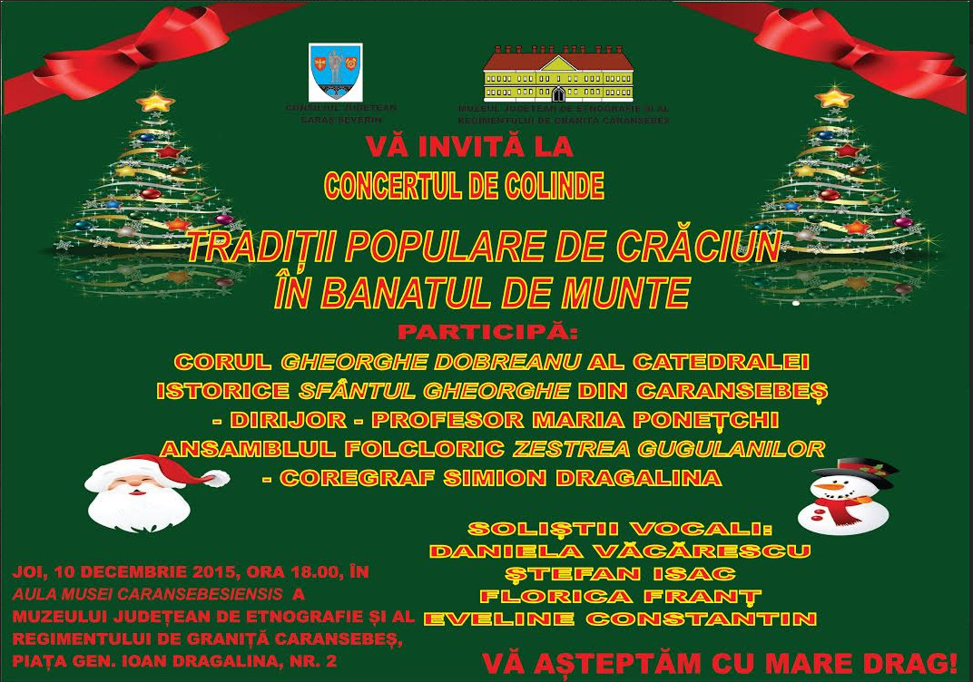 Forumul Democratic al Germanilor din judeţul Caraş-Severin şi Asociaţia Germană de Cultură şi Educaţie a Adulţilor din Reşiţa au organizat în anul 2015, pe lângă multe altele, următoarele manifestări principale: „Decada Culturii Germane în Banatul Montan” (cea de a XXV-a ediţie, 2 – 11 octombrie) cu cea de a XXII-a ediţie a sărbătorii „Heimat“-ului germanilor din Banatul Montan la Caransebeş organizată în 3 octombrie, „Zilele Literaturii Germane la Reşiţa” (cea de a XXV-a ediţie, 17 – 20 aprilie), „Parada Portului Popular German la Reșița” (cea de a XXI-a ediție, 4 octombrie), „Copiii desenează ţinutul natal” (cea de a XII-a ediţie), cu expoziția la Losowa / Ucraina (26 mai), „Iubindu-L pe cel Răstignit, ne îndreptăm spre Sărbătoarea Luminii” (cea de a X-a ediţie, 26 martie), „Primăvara culturală germană la Reşiţa” (cea de a XIII-a ediţie, 7 – 13 mai), „Te salut, copilărie” (cea de a VII-a ediţie, 3 iunie), „Iunie – luna expoziţiilor” (cea de a VIII-a ediţie), „Germana din plăcere” (cea de a XVI-a ediţie, 1 – 7 august), „Gărâna în septembrie“ (cea de a XVII-a ediţie, 26 – 27 septembrie), cea de a „13-a Întâlnire a formaţiilor muzicale şi a corurilor germane în Banatul Montan” (2 octombrie), expoziţia filatelică „ETNIC 2015” – a IV-a ediţie a seriei „Etnic“ – (6 – 7 noiembrie) şi „Toamna culturală germană la Reşiţa” (cea de a XIII-a ediţie, 5 – 26 noiembrie).