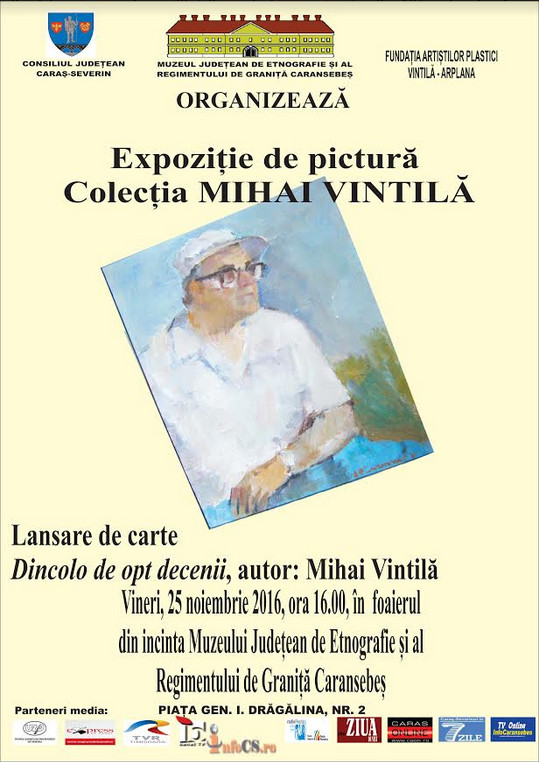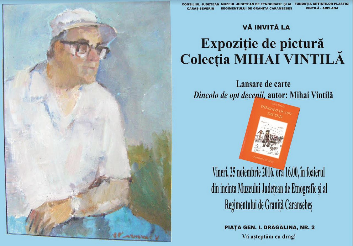 Muzeul Judeţean de Etnografie şi al Regimentului de Graniţă Caransebeş alături de Consiliul Judeţean Caraş-Severin și Fundația Artiștilor Plastici Vintilă – ARPLANA organizează vernisajul expoziției de pictură Colecția Mihai Vintilă. Evenimentul va avea loc vineri, 25 noiembrie 2016, începând cu ora 16.00, în foaierul instituției de cultură.