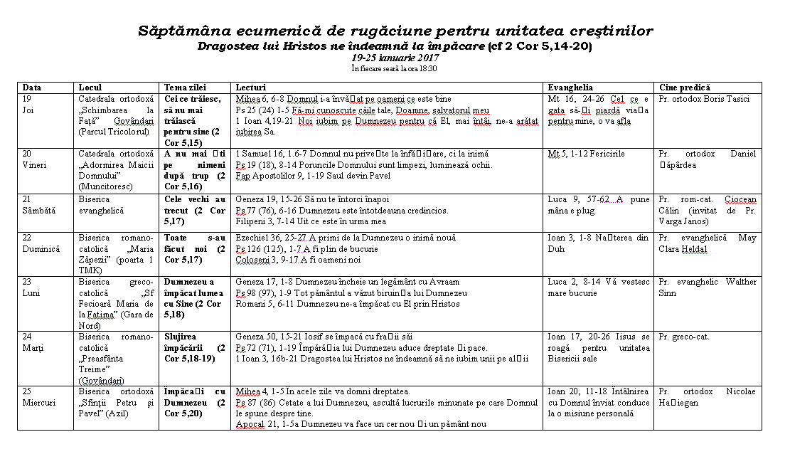 Biserica romano-catolică „Maria Zăpezii”, Reșița, Vineri, 27 ianuarie 2017, ora 17,00