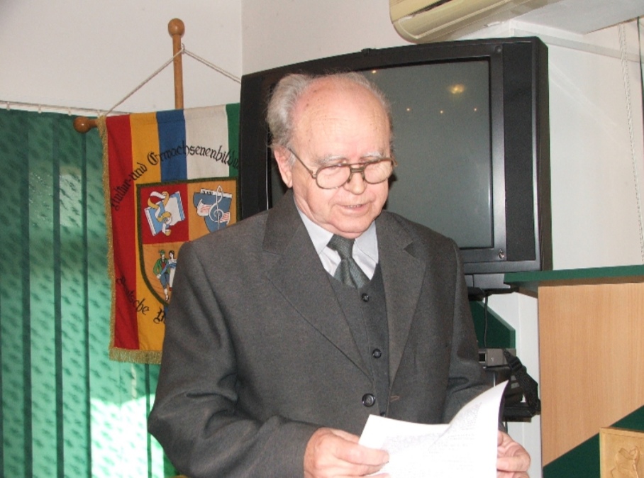 născut la 25 aprilie 1935 în Bethausen / jud. Timiș, profesor de fizică, autor de manuale, membru îndelungat al consiliilor coordonatoare ale Forumului Democratic al Germanilor din județul Caraș-Severin (1992 – 2012), consilier județean în cadrul Consiliului Județean Caraș-Severin (1996 – 2008), director al Casei Corpului Didactic (1971 – 1981), purtătorul Premiului „Alexander Tietz“ pentru anul 2008, Cetățean de Onoare al Municipiului Reșița din 25.12.2007, după o grea și îndelungată suferință.