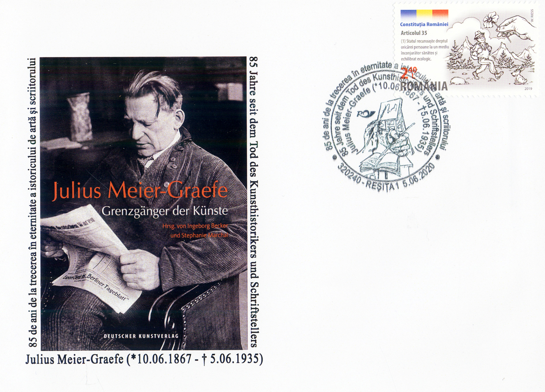 Anul acesta, Asociația Germană de Cultură și Educație a Adulților Reșița a marcat împlinirea a 85 de ani de la trecerea în eternitate a lui Julius Meier-Graefe printr-un plic filatelic ocazional și o ștampilă adecvată.