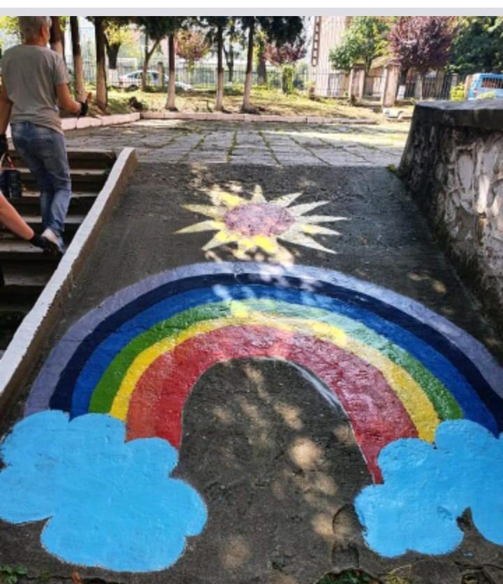 Despre cum trebuie respectate și pentru a sublinia măsurile împotriva noului virus, cadrele didactice de la Programul școlar Step by step au transmis celor mici mesaje speciale pe asfalt în culorile spectaculoase ale curcubeului (vezi foto). Cu multă muncă, dar și voie bună, au desenat toată curtea interioară a liceului în simboluri luminoase, calde, optimiste, reușind să impresioneze prin sensibilitatea și devotamentul lor. Ca în fiecare debut de an școlar, colegele noastre talentate ne-au încântat și ne-au amintit că toamna este începutul unei povești pentru fiecare suflet care trece pragul unității noastre școlare.