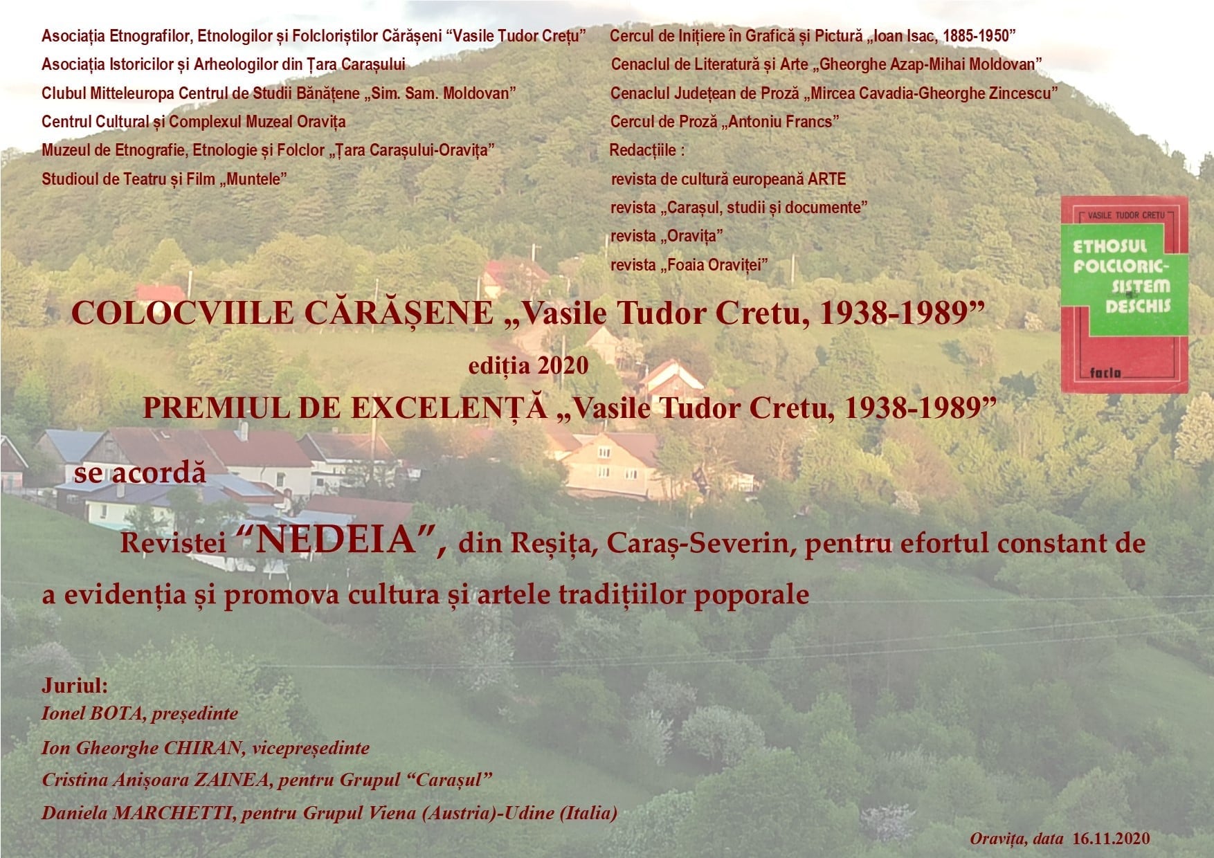 Nevoia de a promova și păstra valorile tradiționale se concretizează atât în cultura scrisă cât și nescrisă. Ambele sunt importante și contribuie la completarea unei redări fidele a lumii tradiționale de pretutindeni. Revenim la publicația „Nedeia“ care de curând a fost distinsă cu o diplomă de excelență în cadrul Colocviilor Cărășene „Vasile Tudor Crețu“ (1938-1989) ediția 2020 pentru „efortul constant de a evidenția și promova cultura și artele tradițiilor poporale“. Diplomă de excelență s-a acordat și coordonatoarei revistei și Colocviilor ,,Nedeia„ , Angelica HERAC, pentru ,,promovarea originalității culturii și artelor tradiționale poporale,,. Mulțumiri încă o dată pentru distincții atât domnului dr. Ionel BOTA, președintele juriului cât și întregului juriu pentru această apreciere. A fost o surpriză foarte plăcută! Această „nevoie“ generală dealtfel, de publicații care să ilustreze identitatea locală trebuie permanent amintită pentru a sublinia nu doar importanța acestora peste timp ci, mai ales, conștientizarea valorilor neamului. În spațiul Banatului Montan, revista „Nedeia“ a încercat să acopere parte din această nevoie și se străduiește în continuare să întrețină viu interesul pentru tot ce înseamnă mândria de a fi român cărășan. Vă propunem un articol valoros pentru noi despre „nevoia de Nedeia“, scris cu deosebită implicare de către domnul profesor Gheorghe ȚUNEA, fostul director al CJCPCT C-S (2000-2017). Dumnealui a fost inițiatorul acestui proiect și l-a gândit în contextul valorificării tezaurului cărășan într-o manieră limpede, atât pentru specialiști cât și pentru publicul interesat de acest domeniu. Mulțumiri domnule prof. Gheorghe ȚUNEA pentru nașterea și botezul acestei reviste care nu a dezamăgit și, iată, a avut și are rezultate notabile. Felicitări deopotrivă pentru întreaga d-voastră activitate culturală și pentru încrederea oferită proiectului NEDEIA, atât revistă cât și colocvii. Continuăm așadar tradiția și ne vom bucura în curând de numărul 16 al publicației ,,NEDEIA,,!