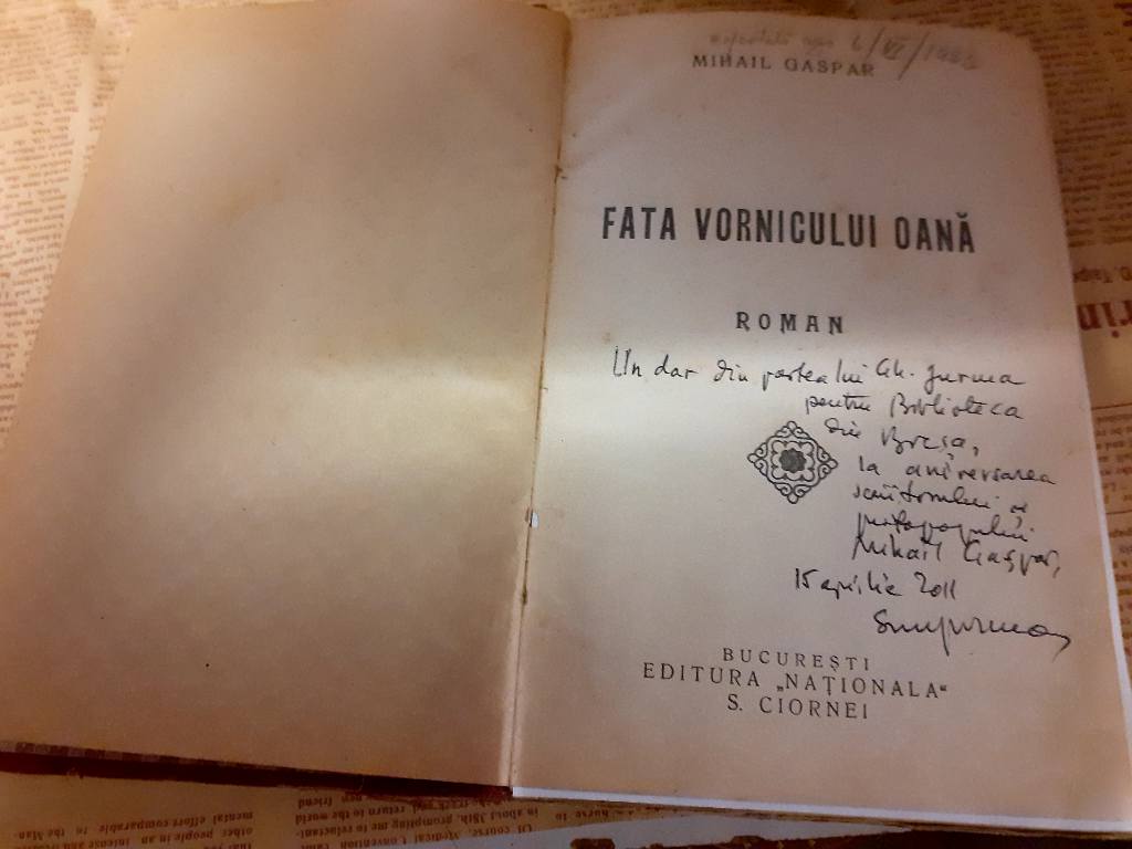 Între cărțile expuse în expoziția dedicată scriitorului și protopopului Mihail Gașpar, amintim unele deosebit de importante și rare: volumul Japonia, Lugoj: editura Carol Traunfellner, 1905 (prima ediție); volumul În vraja trecutului, Lugoj: Editura Coloman Nemeş, 1908 (tot prima ediție); Fata vornicului Oană, Bucureşti: Editura Naţională S. Ciornei, [s.a.] Credem că este vorba tot despre o primă ediție. Cartea nu este datată însă, fostul proprieter a notat cu creionul pe foaia de titlu însemnarea: copertată azi 6 VI 1933. Volumul este foarte valoros pentru biblioteca bocșană și dintr-un alt motiv: este un dar primit de la scriitorul și editorul Gheorghe Jurma și are următoarea dedicație pe pagina de titlu: „Un dar din partea lui Gheorghe Jurma pentru Biblioteca din Bocșa, la aniversarea scriitorului și protopopului Mihail Gașpar, 15 aprilie 2011”; volumul Fata vornicului Oană, ediţie îngrijită şi studiu introductiv de George C. Bogdan şi Doina Bogdan Dascălu, Timişoara: editura Facla, 1974, o ediție, de asemenea, importantă deoarece, pe pagina de gardă se află dedicația Doinei Bogdan-Dascălu: „Elevului Izvernar Sorin Lucian, pasionatului de literatură și frumos, cele mai bune urări de noi succese! Cu drag, Doina Bogdan-Dascălu”; apoi Din vremuri de mărire, ediţie îngrijită şi studiu introductiv de George C. Bogdan şi Doina Bogdan Dascălu, Timişoara: editura Facla, 1982; și cele două volume mai noi intitulate D-ale vieţii / Mihail Gaşpar; ediţie critică, tabel cronologic, studiu introductiv şi note de pr. dr. Valentin Bugariu, cu o Precuvântare de P.S. Lucian Mic, Episcopul Caransebeşului.- Timişoara: Eubeea, 2008.