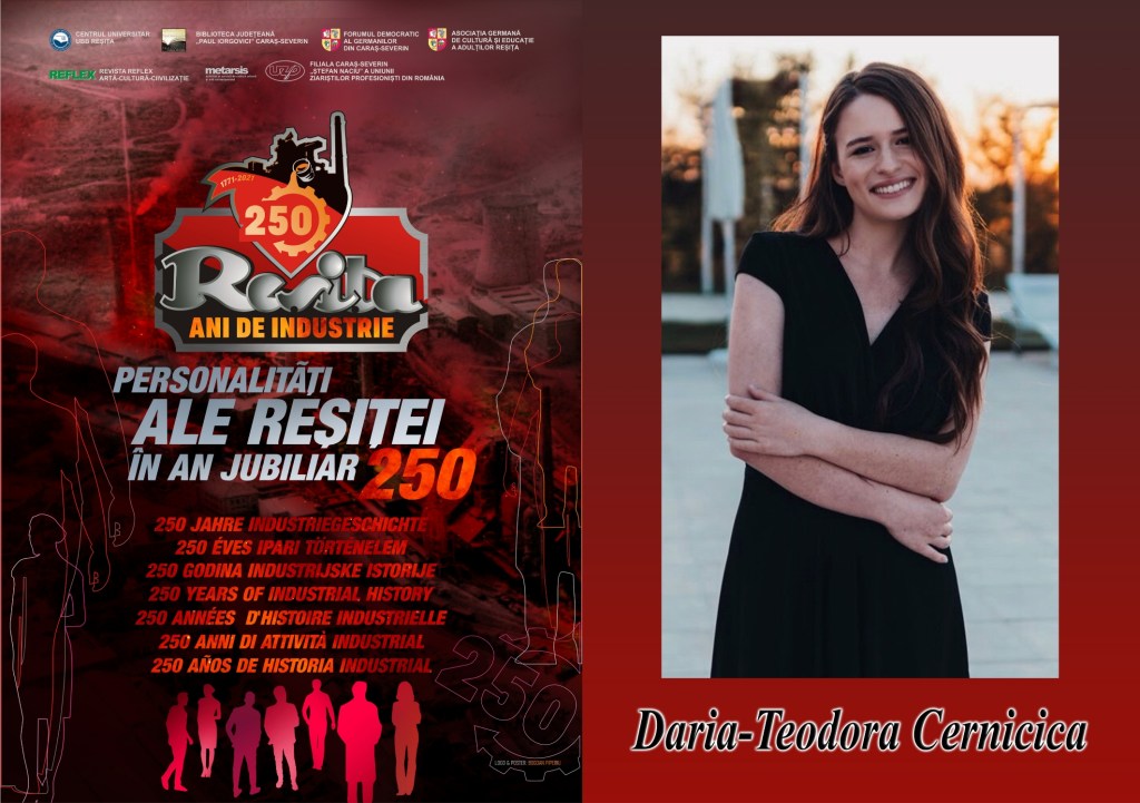 A crește într-un oraș precum Reșița a reprezentat un pilon important în construcția tinerei persoane care scrie aceste rânduri. Atât oamenii cu care am fost înconjurată, cu toții profesioniști, atenți, blânzi și doritori de a transmite mai departe valori morale autentice, cât și peisajele ce n-au făcut nimic altceva decât să modeleze firea artistică ce se năștea în tânărul copil reșițean, au format împreună o rampă de lansare pentru sute sau chiar mii de caractere aflate încă în proces de șlefuire și definitivare. În Reșița mi-am dezvoltat prima pasiune: muzica și am descoperit-o pe cea de-a doua: medicina, ajutată de dascăli valoroși fără de care nu aș fi fost ce sunt acum.