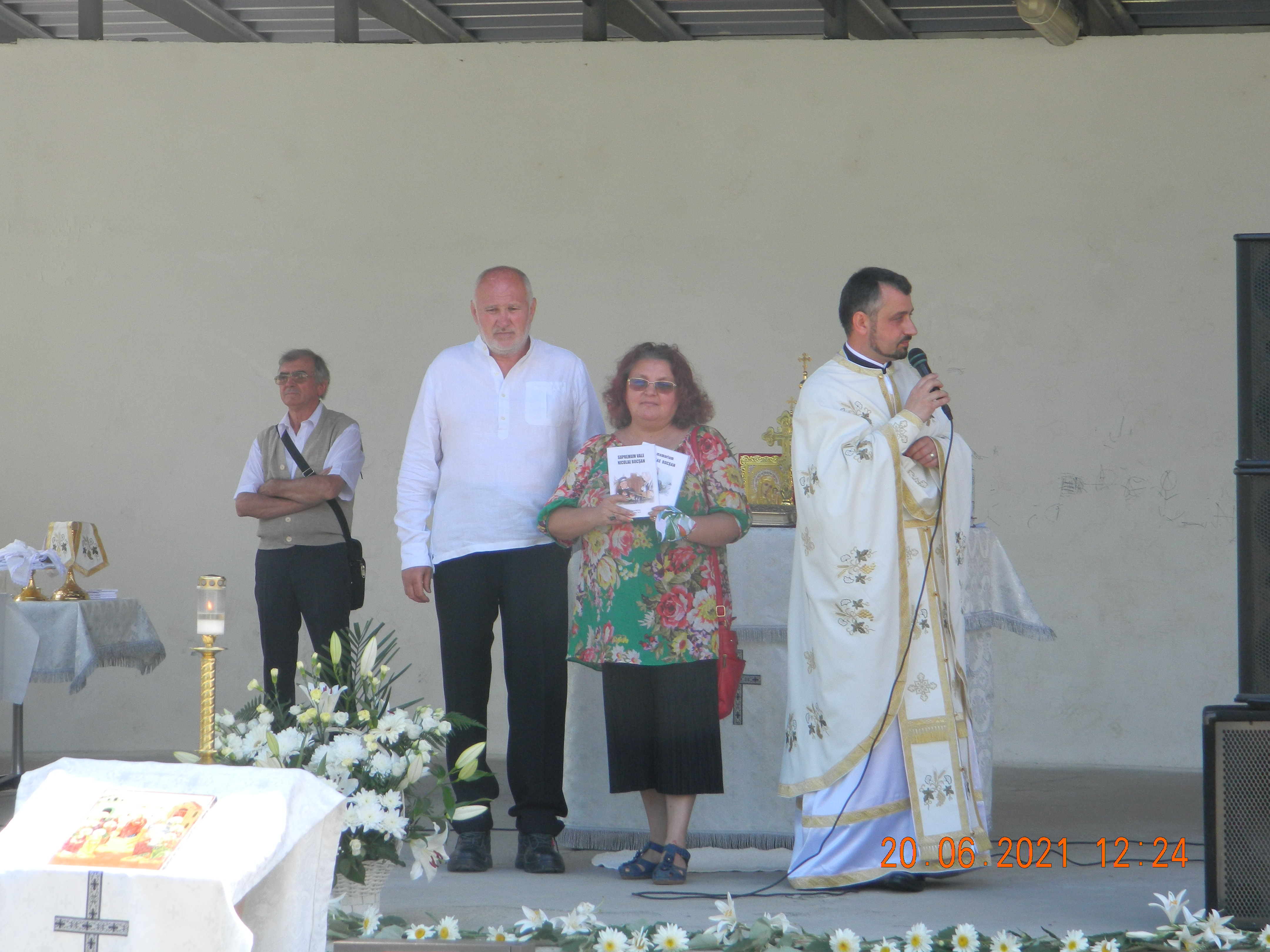 După lansarea celor două cărți și amintirea personalității lui Nicolae Bocșan, credincioșii prezenți în Parcul Pescăruș au fost invitați la miruit și au primit ramuri de tei și snopi de grâu și, evident, au fost invitați să rămână în continuare pentru finalizarea evenimentului pregătit de Sfintele Rusalii la Bocșa Română.