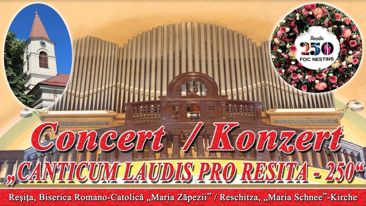 Ultimul proiect în a marca anul jubiliar Reșița 250, pe care l-am propus comunității, a fost unul muzical. Câteva amănunte: Parohia Romano-Catolică „Maria Zăpezii“ din Reșița, împreună cu Forumul Democratic al Germanilor din jud. Caraș-Severin și cu Asociația Germană de Cultură și Educație a Adulților Reșița organizează, în perioada mai – octombrie 2021, un ciclu de Concerte de muzică de orgă, sub motto-ul „CANTICUM LAUDIS PRO RESITA – 250“, care se desfășoară pe orga Wegenstein din Biserica „Maria Zăpezii“, în fiecare a treia duminică din lună, începând cu ora 18.00. Primul concert s-a desfășurat în data de 16 mai, protagoniștii săi fiind reșițenii Cristian Roșoagă, Christine Maria Surdu și Patrick Paulescu (organiști), precum și solo: Gheorghe Colța și Christine Maria Surdu. Cel de-al doilea concert a fost organizat în data de 20 iunie 2021, avându-i ca invitați pe timișorenii Denis Moldovan și Krisztián Kelemen.