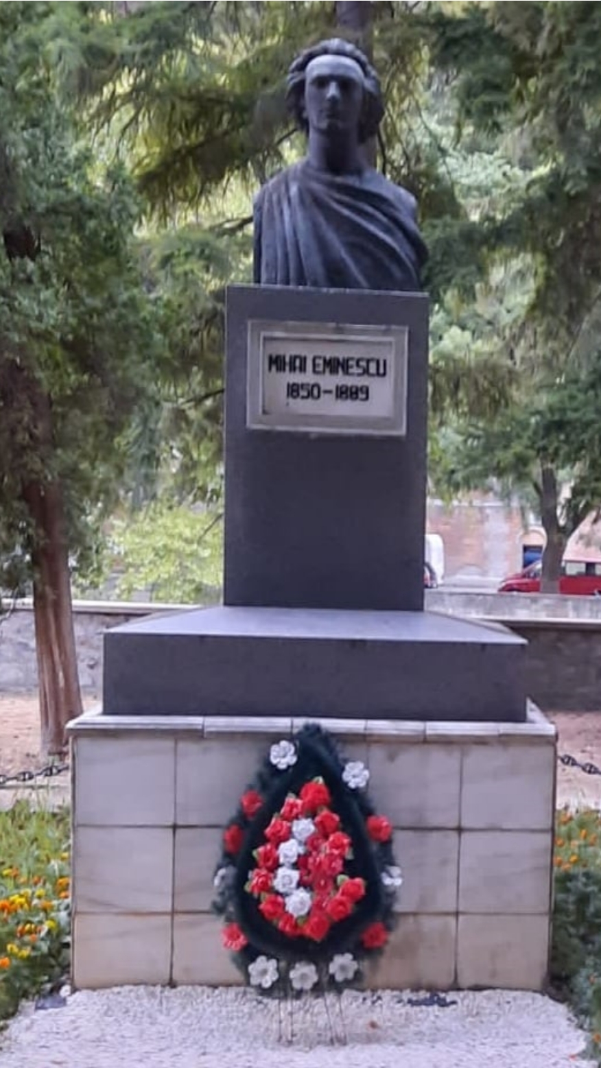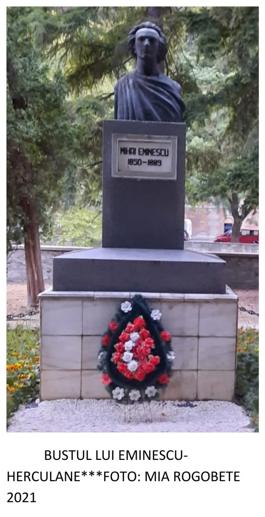Hercules nu mai vorbește cu noi…doar Biserica Romano- Catolică ne-a arătat calea spre Grota Haiducilor-fără haiduci- doar o tonetă-microbuz cu înghețată ne-a atras cu decorurile ei, nicio bancă pe care să ne așezăm, nicio floare, am mâncat înghețata delicioasă la picioarele lui Hercules, vai de turiști…apoi cu mare, mare grijă am pornit mai departe, peste tot gropi mari, cabluri ieșite, pereți picați și multă mizerie, coșuri de gunoi pline, miroseau. Mi-a atras atenția trenulețul stațiunii, el era cel mai voios, bravo lui, se bucură singur! M-am simțit bine câteva clipe atunci când am dat cu ochii de bustul marelui poet Mihai Eminescu. Sincer, îndrăgostit de natură, îi curgeau strofele valuri, valuri, pe Cerna în jos…pe un mal frumos…Eminescu, veșnicul Eminescu, este mereu cu noi, el este cartea de identitate a poporului român.