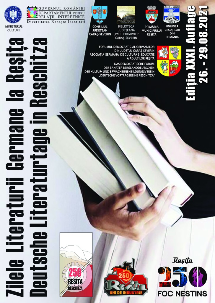 Ora 16.00, Biblioteca Germană „Alexander Tietz“: Deschiderea festivă a celei de a XXXI-a ediții a „Zilelor Literaturii Germane la Reșița“ prin Erwin Josef Ţigla; Lectura autoarei Nora Iuga (București) din creația poetică, tradusă din limba română în limba germană de Georg Aescht și prezentarea volumului „Ausgewählte Gedichte” („Poezii alese”), autoare: Nora Iuga (București), carte apărută în Editura „Banatul Montan“ Reșița, 2020, cea de a 102-a apariție editorială a Asociației Germane de Cultură și Educație a Adulților Reșița; Prezentare de carte în limba română și germană: „Geschichte Siebenbürgens” („Istoria Transilvaniei”), autori: Ioan Aurel Pop, Ioan Bolovan (Cluj Napoca), editor: Traian Pop, traducere din română în germană: Werner Kremm, apărută în Editura „Pop” Ludwigsburg, Germania, 2020, în prezența autorului Ioan Bolovan, a editorului și a traducătorului; Prezentări de carte în limba română: „Patrimoniu preindustrial și industrial în România”, volumul 8, autor: dr. Volker Wollmann (Obrigheim / Germania), apărută în Editura „Honterus” Sibiu, 2020, și „Reșița: Viziuni 2 / Reschitza: Visionen 2”, editori: Gheorghe Jurma, Erwin Josef Țigla, apărută în Editura „Banatul Montan” Reșița, 2021, cea de a 110-a apariție editorială a Asociației Germane de Cultură și Educație a Adulților Reșița.