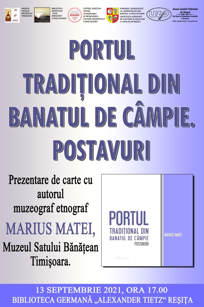 „Portul tradițional din Banatul de Câmpie. Postavuri“: Prezentare de carte în prezența autorului, muzeograf-etnograf Marius Matei, Muzeul Satului Bănățean Timișoara.