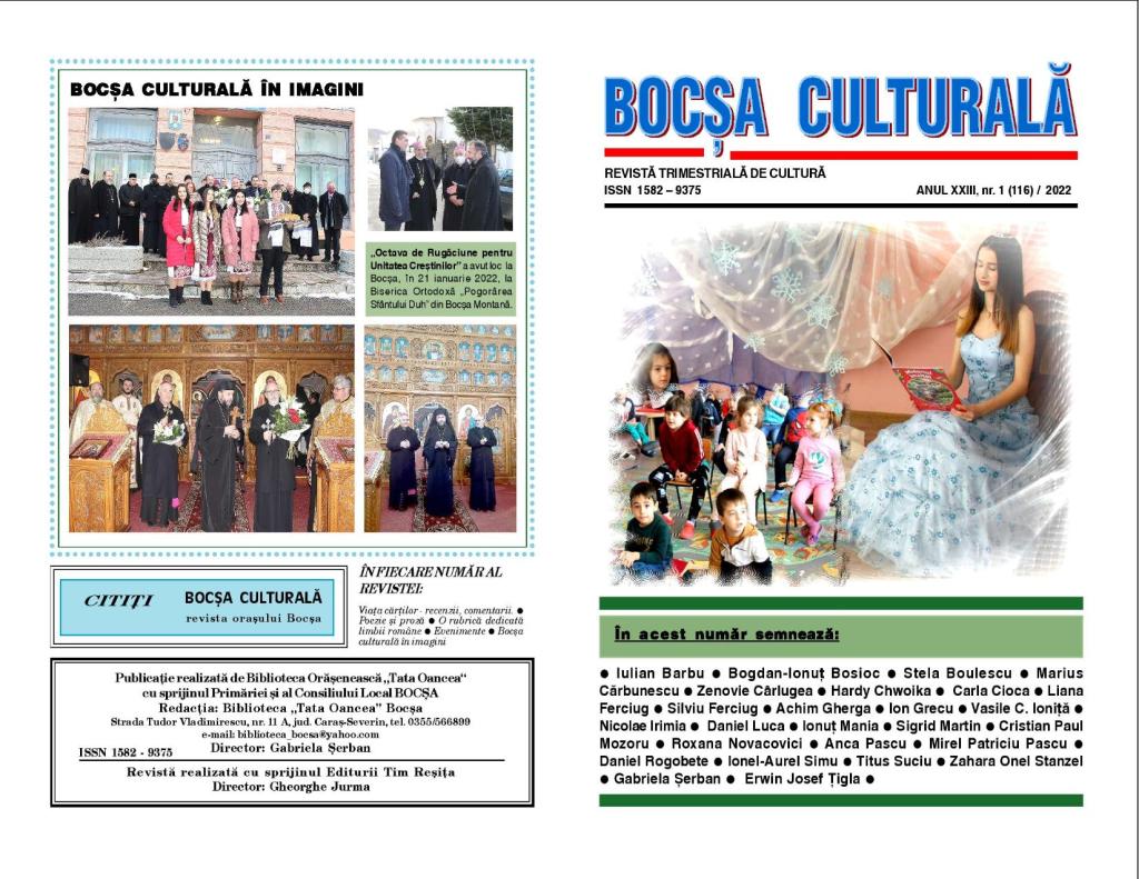 Evenimentul a fost organizat de Biblioteca Orășenească „Tata Oancea” Bocșa, cu sprijinul Primăriei și Consiliului Local Bocșa, și a fost moderat de Gabriela Șerban, managerul instituției gazdă, cea care a și prezentat primul număr din acest an al revistei trimestriale „Bocșa culturală”, publicație care a pășit în cel de-al XXIII-lea an de apariție.