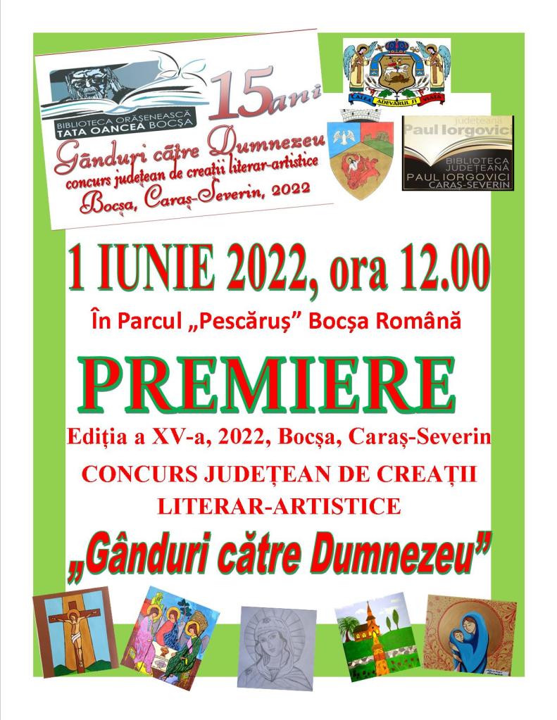 Premiere – ,,Gânduri către Dumnezeu” 17 mai 2022 / uzpcarasseverin / Scrie un comentariu Partajează asta: Partajează pe Facebook(Se deschide într-o fereastră nouă) Facebook Partajează pe LinkedIn(Se deschide într-o fereastră nouă) LinkedIn Partajează prin WhatsApp(Se deschide într-o fereastră nouă) WhatsApp Imprimare(Se deschide într-o fereastră nouă) Imprimare Apreciază Încarc...
