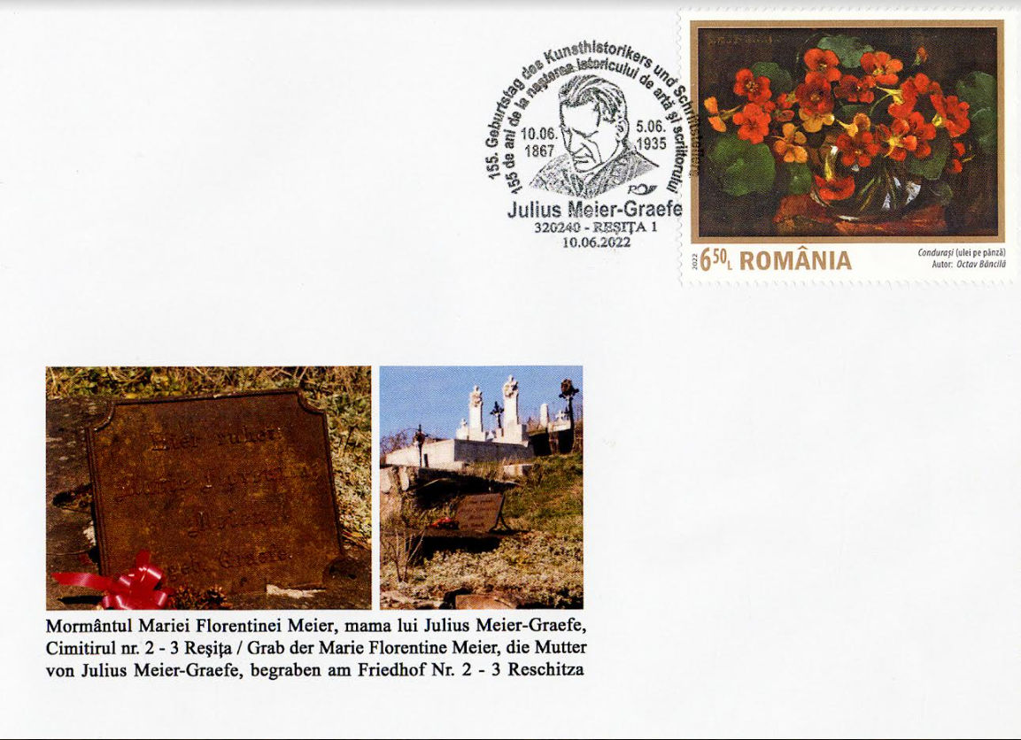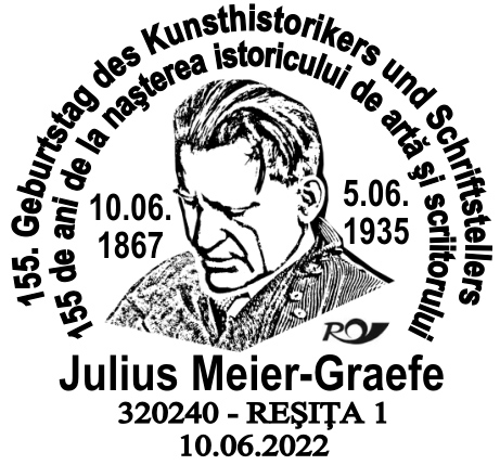 Anul acesta, Asociația Germană de Cultură și Educație a Adulților Reșița marchează împlinirea a 155 de ani de la nașterea lui Julius Meier-Graefe printr-un plic filatelic ocazional și o ștampilă adecvată.