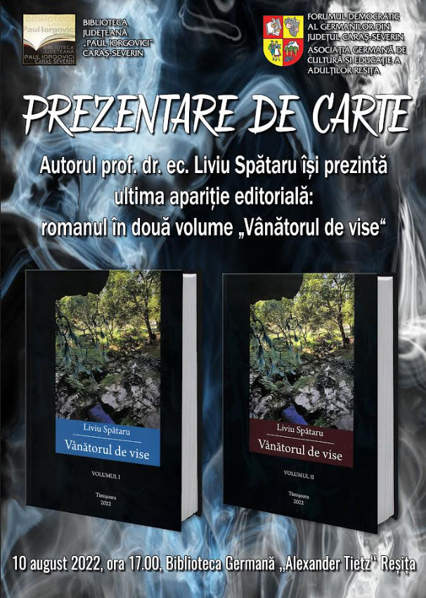 Prezentare de carte. Autorul prof. dr. ec. Liviu Spătaru își prezintă ultima apariție editorială: romanul în două volume „Vânătorul de vise“, apărut în București, 2022.