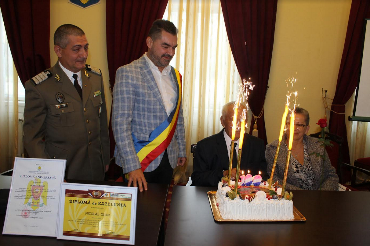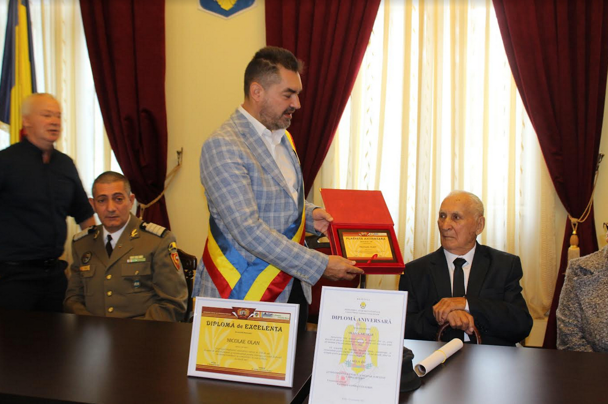 În dimineața zilei de 1 octombrie, în sala de festivități a Consiliului Local Bocșa, primarul orașului, dr. Mirel Patriciu Pascu, l-a sărbătorit așa cum se cuvine pe cel mai vârstnic locuitor al urbei pe care cu cinste o păstorește, l-a felicitat și l-a premiat pe dl. Nicolae Olan, eveniment de care s-a bucurat nu doar familia, ci și alți participanți prezenți!