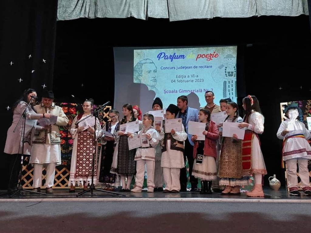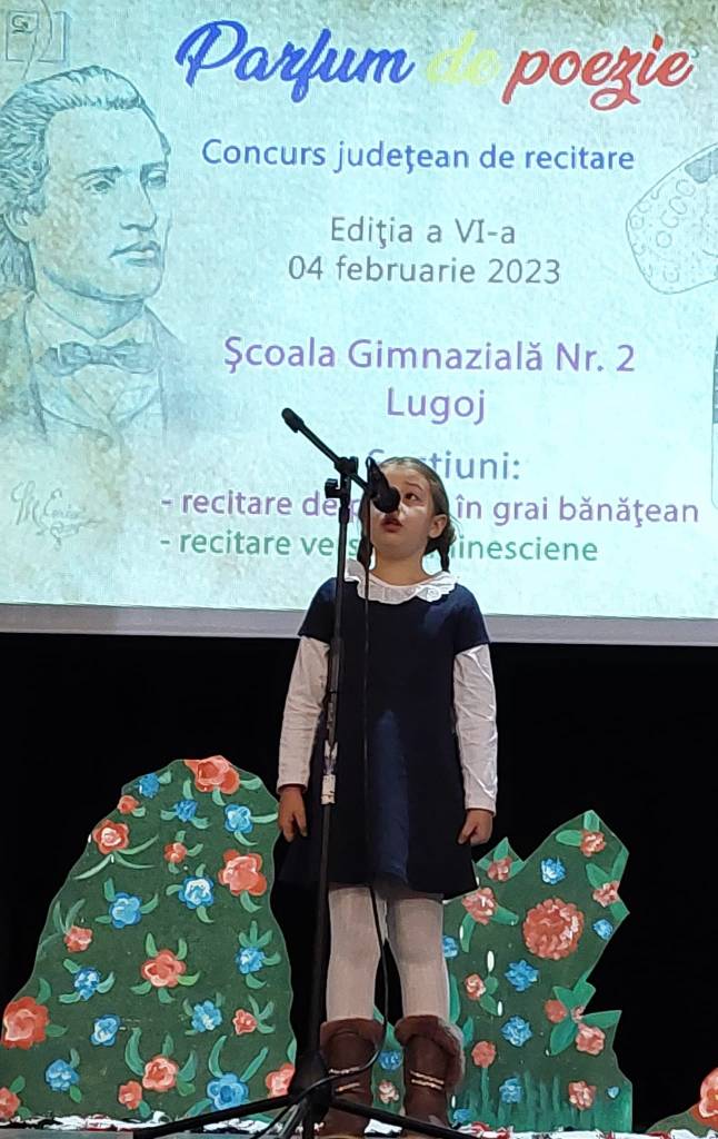 Sâmbătă, 04 februarie 2023, începând cu ora 10.30, în Sala Teatrului Municipal ”Traian Grozăvescu” din Lugoj a avut loc un eveniment de suflet cu denumirea ”Parfum de poezie”, un ”Concurs Județean de Recitare” ce a ajuns la ediția a VI-a organizat de Școala Gimnazială Nr.2 Lugoj, secțiunile fiind: recitare de poezie în grai bănățean și recitare în versuri eminesciene. Cum numai un profesor serios și iubitor de poezie eminesciană, prof. Ana-Maria Dan, poate să dea dovadă de o coordonare exemplară, susținând din umbră, cu suflet pentru suflet, pe toți participanții mici și mari la această competiție, acest eveniment cultural a fost unul reușit din toate punctele de vedere. Atmosfera din sală a prins viață din prima clipă datorită doamnei director Cristina Pop-Coman, omul care a încurajat tinerii participanți la acest concurs cu zâmbetul plin de bucurie, dar și cu dragostea ce le-o poartă minunaților elevi ai acestei școli cu renume. Astfel că o parte din emoțiile recitatorilor au fost preluate de stimata doamnă dir. Cristina Coman prin încurajarea, dar și susținerea totală de care a dat dovadă, drept pentru care spun cu toată sinceritatea că această doamnă reprezintă o bucățică din inima sistemului de educație. Elevi frumoși din învățământul primar și gimnazial au pus piciorul pe scena teatrului recitând cu emoție și multă dragoste din opera marelui nostru poet Mihai Eminescu. Ce poate fi mai adevărat decât puritatea acestor copii care din nimic fac totul, care ne arată că nu există întuneric pentru că ei sunt mereu acolo în lumina caldă a orizontului, care ne scriu cu litere de pământ, de cer, că există în fiecare din noi un copil ce își poartă regatul peste tot, lăsând porțile deschise timpului pentru a se juca din când în când. Pot spune că în sala de spectacol a teatrului m-a cuprins primăvara în aceste ore parfumate de poezie, am renunțat la prezent și am lăsat copilului din mine să își facă de cap cu balsamul de suflet primit cadou de la zecile de mâini adunate în jurul meu, o clipă am vrut să îi mulțumesc cuiva, dar m-am trezit în vâltoarea tinereții care îmi șoptea la ureche versuri încărcate cu iubire ale poeziei ”Rugăciune”, și parcă toată suflarea din sală, părinți, bunici, prieteni, se închinau Divinătății. Doamne, cât de perfectă ai făcut ființa noastră, ca să simți iubirea în cuvinte, copilăria în gesturi, frumusețea în strălucirea ochilor. ”Crăiasă alegându-te Îngenunchem rugându-te, Înalță-ne, ne mântuie Din valul ce ne bântuie. Fii scut de întărire Și zid de mântuire, Privirea-ți adorată Asupră-ne coboară, O, maică preacurată, Și pururea fecioară, Marie!” (”Rugăciune”, de Mihai Eminescu) A fost o competiție înscrisă în CAEJ 2022-2023 în care zeci de elevi din învățământul primar și gimnazial au pus o piatră la temelia poeziei eminesciene, dar și a poeziei în grai bănățean, iar toată suflarea prezentă la acest adevărat spectacol a fost pătrunsă de sensibilitate, originalitate, talent, trăiri, simțiri, multă creativitate, imaginație. Câteva secunde m-am rupt de realitate și am intrat în copilăria mea, în locul și momentul în care l-am cunoscut pe Eminescu, acolo natura îmi îmbrățișa ființa, apoi am revenit la prezentul ce mă privea în față spunând: ”Până la urmă cu aceste lucruri rămânem, pentru că emoția participării la aceste acțiuni culturale ne urmăresc toată viața ajutându-ne să ne regăsim atunci când credem că pierdem bucăți din noi, pentru că Eminescu este culoare, tremur, frământare, eșec, reușită, libertate, sărut, dorință, iubire, tulburare, împlinire, dragoste de viață, bucurie, Eminescu este cartea de identitate a timpului din noi.” Astăzi, parcă mai mult ca oricând, căutăm adevărul în versurile poetului, ne identificăm cu personajele din opera sa, simțim și trăim exact ce transmite Eminescu în tot ce a scris, astăzi, mai mult ca oricând, avem nevoie de Eminescu, Luceafărul ce ne-a luminat drumul copilăriei noastre eterne, Luceafărul care ne hrănește cu iubirea de țară, de pământul strămoșesc și cel mai important este că trebuie să avem grijă de el. Toți care au pus umărul la organizarea și buna desfășurare a acestui eveniment cultural merită cu adevărat felicitați, cadre didactice, personalități ale culturii lugojene ( Cristina Pop Coman, Ana Maria Dan, Diana Boian, Sergiu Boian, Silviu Boian, Dan Liuț, Tilore Kortner, Mihaela Kristof, Paulis Vasile Alexandru, Adriana Weimer, Maria Rogobete), dar cel mai mult merită admirați, felicitați și susținuți minunații copii curajoși, ei au adus în inimile tuturor din Sala Teatrului ”Traian Grozăvescu” din Lugoj balsamul de suflet care va parfuma multă vreme ființa noastră, iar pentru mine a fost cel mai frumos cadou de ziua mea care este în 05. februarie 2023, mulțumesc pentru diploma primită în calitate de membru al juriului. Atât diplomele de participare cât și premiile au fost înmânate elevilor la finalul evenimentului, fiecare copil bucurându-se de această zi scăldată în parfum de poezie, emoțiile transformându-se în milioane de speranțe. Felicitări, Școala Gimnazială Nr. 2 Lugoj! Felicitări tuturor cadrelor didactice iubitori de poezie eminesciană, iubitori de cultură!