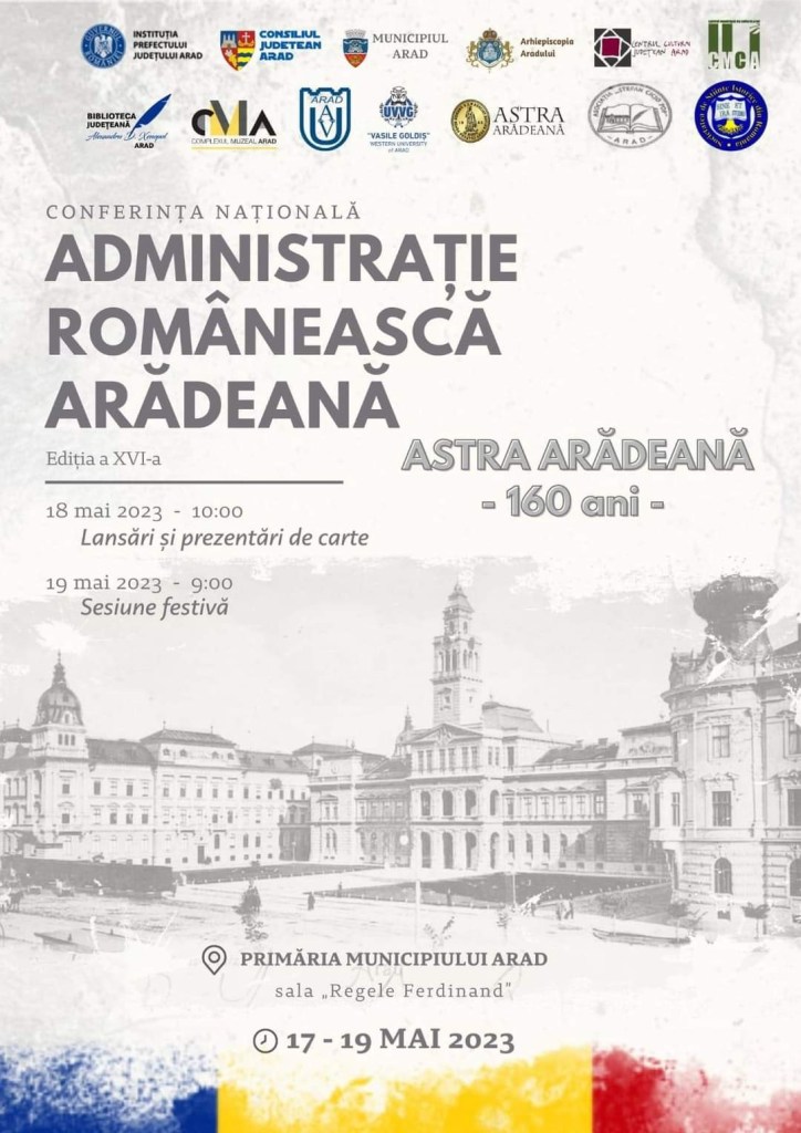 Complexul Muzeal Arad este co-organizator al evenimentului 𝐂𝐨𝐧𝐟𝐞𝐫𝐢𝐧ț𝐚 𝐍𝐚ț𝐢𝐨𝐧𝐚𝐥ă „𝐀𝐝𝐦𝐢𝐧𝐢𝐬𝐭𝐫𝐚ț𝐢𝐞 𝐑𝐨𝐦â𝐧𝐞𝐚𝐬𝐜ă 𝐀𝐫ă𝐝𝐞𝐚𝐧ă”, la care participă și specialiști ai Muzeului Județean de Etnografie și al Regimentului de Graniță Caransebeș. Cea de-a XVI-a ediție a Conferinței Naționale „Administrație Românească Arădeană” se desfășură în aceste zile, sub auspiciile aniversării a 160 de ani de la prima Adunare Generală a „Asociaţiunii Naţionale Arădene pentru Cultura Poporului Român” (ASTRA Arădeană). Secțiunile Conferinței includ cercetări, analize și studii originale referitoare la evoluția și reflectarea calității administrației prin aspecte de istorie locală, regională, națională și universală, trecutul ecleziastic, etnografic, sociologic și educațional, precum și creionarea unor portrete și medalioane de personalități.