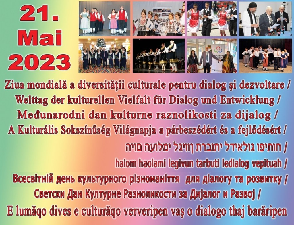 În fiecare an, începând cu 20 decembrie 2002, se sărbătorește în data de 21 mai, la inițiativa ONU, Ziua mondială a diversității culturale pentru dialog și dezvoltare. Etnia germană din Banatul Montan, ca parte integrantă a diversității spațiului în care conviețuiește alături de populația majoritară și celelalte etnii conlocuitoare din sud-vestul țării, reprezentată prin Forumul Democratic al Germanilor din județul Caraș-Severin și prin Asociația Germană de Cultură și Educație a Adulților din Reșița, este conștientă de rolul determinant al fiecărui membru în parte al comunității, indiferent de limba și cultura cărora le aparține, în dezvoltarea acestei diversități culturale, organizând încă din 1990 diferite manifestări care să pună în plan central acest lucru, de fapt o normalitate trăită în Banatul Montan. Începând din urmă cu patru ani, cele două entități germane din Caraș-Severin au organizat anual manifestări culturale dedicate acestei zile. Astfel, în anul 2018 a fost organizată, la Biblioteca Germană „Alexander Tietz” din Reșița, o manifestare comună cu reprezentanții Uniunii Croaților din România, având sediul la Carașova, în anul 2019 cu membrii comunității maghiare din Reșița, prin Uniunea Democrată a Maghiarilor din România, Filiala Reșița, iar în anul 2020, pandemia ne-a oprit în continuarea acestor manifestări culturale cu public, astfel că s-a ales ca marcarea zilei de 21 mai să se efectueze prin apariția unei broșuri. Ziua de 21 mai a fost marcată în parteneriat cu Comunitatea Evreilor din România, membră a Federației Comunităților Evreiești din România, prin publicarea unei broșuri prin intermediul căreia ing. Ivan Schnabel, președintele Comunității Evreilor Reșița, a publicat un articol despre „Istoria Comunității Evreilor din Reșița”. Textul, bogat ilustrat cu fotografii din arhiva comunității evreilor și din arhiva FDG C-S, a fost publicat în traducere în limbile germană (traducător: Raluca Nelepcu), engleză (traducător: Ada D. Cruceanu) și franceză (traducător: Ramona Obersterescu), astfel oferindu-se posibilitatea citirii broșurii și în spațiul internațional. În 2021 s-a continuat editarea unei broșuri, de data aceasta în parteneriat cu Filiala Caraș-Severin a Uniunii Ucrainenilor din România. Astfel, președintele filialei, prof. Ivan Liber, ne-a făcut cunoscută prin intermediul acesteia istoria acestei minorități în Banatul Montan, atât în limba română cât și în limba ucraineană. A urmat aceeași istorie, dar tradusă în limbile germană (traducător: Ramona Obersterescu), engleză (traducător: Ada D. Cruceanu) și franceză (traducător: Ramona Obersterescu). Broșura a fost înfrumusețată vizual cu fotografii din arhiva Filialei Caraș-Severin a Uniunii Ucrainenilor și din cea a Forumului German din județ. Pe lângă editarea acestei broșuri, în data de 21 mai, începând cu ora 17.00, s-a transmis online din mini-studioul amenajat în Biblioteca Germană „Alexander Tietz” din Reșița o întâlnire cu mai mulți reprezentanți ai următoarelor minorități naționale din județul Caraș-Severin, care au vorbit despre activitățile acestora în perioada pandemiei: croată, maghiară, evreiască, ucraineană, sârbă și romă. Anul trecut, 2022, ne-am orientat spre o colaborare în editarea unei broșuri împreună cu Filiala Reșița a Uniunii Sârbilor din România. Astfel, cu sprijinul dlui ing. Dragan Mirovici, a putut fi realizată o broșură dedicată etniei sârbe din acest spațiu, înfrumusețată cu imagini din arhiva uniunii. Textele apărute în broșură au fost redactate în limbile română, sârbă, germană (traducător: Ramona Obersterescu) și engleză (traducător: Ada D. Cruceanu). Anul acesta, 2023, ne-am îndreptat atenția spre etnia rromă din județ, realizându-se o broșură dedicată etniei rrome din acest spațiu, înfrumusețată cu imagini din arhiva organizației reprezentative a acestei etnii în județul Caraș-Severin, Partida Rromilor Pro Europa, Filiala județeană. Textele apărute în broșură au fost redactate în limbile română, rromani, germană (traducător: Ramona Obersterescu) și engleză (traducător: Ada D. Cruceanu). Pentru limba rromani, și-a adus contribuția Catedra de limbă și literatură rromani, județul Caraș-Severin, prin membri ei prof. Anita Mezin (Colegiul Național „Diaconovici – Tietz“ Reșița), prof. Carmen Cîrpaci (Colegiul Național „Diaconovici – Tietz“ Reșița), prof. Adriana Adela Apopi (Școala Gimnazială Constantin Daicoviciu), prof. Nicolae Cîrpaci (Școala Gimnazială Constantin Daicoviciu), prof. Adrian Ionel Constantin (Colegiul Național „Diaconovici – Tietz“ Reșița) și prof. Gheorghe Manda (Colegiul Național „Traian Lalescu“ Reșița). Prof. Gheorghe Manda, președintele Filialei Caraș-Severin a Partidei Rromilor Pro Europa a fost marți, 23 mai oaspetele mini-studioului amenajat în Biblioteca Germană „Alexander Tietz” din Reșița unde, timp de mai bine de o oră s-a discutat despre istoria, tradițiile, învățământ, și perspective ale acestei etnii în sud-vestul țării. A fost o întâlnire de suflet, care poate fi urmărită pe canalele de YouTube și pe Facebook ale Forumului Democratic al Germanilor din județul Caraș-Severin / Demokratisches Forum der Banater Berglanddeutschen. Aducem mulțumiri dl prof. Gheorghe Manda, președintele Filialei Caraș-Severin a Partidei Rromilor Pro Europa pentru colaborarea din acest an, marcând astfel această zi deosebită de 21 mai: Ziua mondială a diversității culturale pentru dialog și dezvoltare.