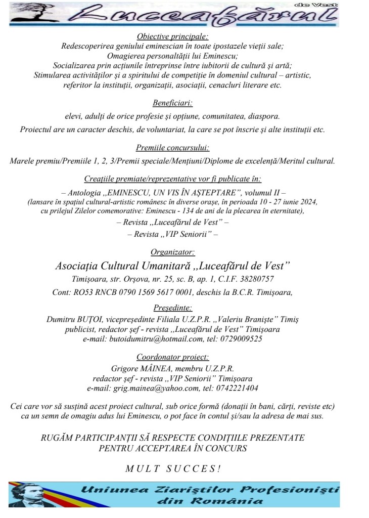 Unii îl cunosc, alții au auzit de el, mulți însă nu știu cine este preotul Teodor PONEAVĂ. Pe acest fond, l-am rugat să creioneze câteve crâmpeie din propria-i viață. – M-am născut în vestita localitate Șiria, într-o familie de țărani, rămânând orfan de mamă la nici 14 ani. De mic copil am nutrit dragoste pentru citit. Așa se face că, grație mamei mele, care-mi citea povești, la 5 ani știam și eu citi. Patima cititului m-a urmărit pe toată durata vieții și m-a influențat nespus de mult. Urmare a basmelor citite am luat o sabie veche, am ascuns-o în pantaloni și m-am dus pe deal să mă războiesc cu zmeii și cu balaurii. Iar mai târziu când am citit Voievodul codrilor, adică pe Tarzan, m-am decis să urc din pom în pom, având abilitatea acestuia. Manifestând din naștere dragoste pentru biserică, încă din clasa a doua am participat activ la slujbele de la biserică, atât la Utrenie, care se făcea atunci la 6:30, cât și la Liturghie care se făcea la ora 10 a.m. Am făcut clasele I-VII la Șiria și dovedind precocitate încă din clasa I, eram dus în clasele mai mari și dat ca exemplu. Manifestând vocație deosebită pentru cariera preoțească, am urmat Seminarul Teologic de la Caransebeș. După seminar, am urmat Facultatea de Teologie din Sibiu, unde am dispus de profesori universitari inegalabili, deoarece, pe tot cuprinsul țării mai activau doar două facultăți de acest tip. După absolvire, am activat doi ani de zile în învățământ în judetul Sălaj și Satu Mare. În acest timp când auzeam clopotele la biserică trăgând, nu mă puteam abține să nu merg la Sf. Liturghie și să spun câte o predică și să cânt la strană. Astfel am fost mutat dintr-un județ în altul, pentru propaganda religioasă în rândul elevilor. Am predat limba română și limba franceză la clasele V-VII. În 1964 m-am căsătorit cu eleva de Școală Pedagogică, Maria Galiș, pe care am întâlnit-o în satul Cizer, unde am fost prima dată profesor și am intrat în preoție în Eparhia Oradiei. După 10 ani pe care i-am petrecut în 3 parohii din Sălaj și Bihor am ajuns în Episcopia Aradului, unde după 2 ani am ajuns în Șiria, satul meu natal și dorința mea finală. Aici am păstorit 33 de ani până la împlinirea celor 70 de ani când m-am pensionat. În anii activi ai preoției, timp de 44 de ani neavând spirit practic, gospodăresc am excelat pe tărâm sufletesc, cultural și educativ, mai ales prin predici, cu partea oratorică. Totuși, pe plan administrativ am adunat bani pentru repararea și construirea bisericilor și caselor parohiale pentru creșterea gradului de confort al credincioșilor. Având și talent literar, am scris cărți, în care am pus accent pe cele mai gingașe probleme, deși până în 1990, preoții n-au avut acces la publicarea lor. După Revoluție am început să public și ceea ce am scris până atunci. Pentru toate aceste activităti am fost onorat cu titlul de iconom stavrofor, de către Episcopia Aradului. Sunt cetățean de onoare al comunei Șiria și membru în diferite organizații și Cenacluri literare care mi-au oferit o multitudine de diplome și premii. Ca iubitor de drumeție și dornic de cunoaștere, am vizitat: Ungaria, Austria, Germania, Franța, Spania, Belgia, Anglia, Polonia, Luxemburg, Cehia, Slovacia, Turcia, Israel, America și Canada. Am ajuns să vizitez aceste țări datorită fiicei mele, Miorița Teodora, care este Diplomat de carieră, lucrând pe la diferite ambasade. Grație pasiunii pentru literatură, am scris 20 de cărți de poezie și proză, în care am pus accent pe cele mai gingașe teme. De 14 ani, de când sunt pensionar, n-am întrerupt activitatea preoțească, dovedind veritabilă chemare pentru activitatea de sacerdot afirmând și eu ca și marele Șaguna: ,,dacă m-aș mai naște odată, tot preot m-aș face”. Având mai mult timp liber am scris și o carte despre satul natal ,,Șiria într-o viață ”, am făcut vizite prin țările amintite mai sus unde am participat la oficierea Sf. Liturghii alături de preoții ortodocși din țările respective. Am mai scris și cărți de predici atât în versuri, cât și în proză pentru uzul colegilor. După pensionare m-am mutat în casa personală, împreună cu fiica cea mai mică și familia ei, care este profesoară la Colegiul Sf. Maria din Arad. În timpul pandemiei, fiind în carantină la București unde am citit în continuu, mi-am pierdut vederea. Astfel sunt însoțit și ajutat peste tot de soția mea, învățătoare pensionară, care îmi rezolvă toate neputințele. Programul meu zilnic se rezumă la: citirea presei locale de către cei apropiați, audierea programelor la televizor, îndeosebi la Trinitas, ascultarea de comentarii pe youtube sau alte mijloace audio, întâlniri cu intelectualii din sat și cu alte persoane, care mă vizitează, plimbări prin parcurile comunei, participare la activitățile culturale organizate pe plan local și regional, participări la înmormântări și slujbe particulare la solicitarea credincioșilor, la Sf. Liturghie alături de preoții din Șiria, comunicare video cu rudele din țară și din străinătate, iar cu fiica și nepotul de la Paris aproape zilnic. Nepotul cel mare, cu care locuiesc acum, mă duce la cofetărie sau la oraș și la medic ori de câte ori este nevoie sau când solicit eu îndeplinirea unei astfel de dorințe. Îi mulțumesc Lui Dumnezeu pentru toate darurile pe care mi le-a dat, pentru realizarea familiei, pentru oportunitățile avute și pentru sănătatea pe care am avut-o. Pentru cititori, ofer cu drag una din poeziile scrise recent. Întoarce-ți apă cursul la izvor/ Zăpezi strivite-ntoarceți-vă-n nor/ Cenușă spulberată-n patru vânturi/ Întoarce-te-n cutia de chibrituri/ Ecoule, în sunet te întoarce/ Tu, pasăre, în ou sau în găuace/ Fă calea-ntoarsă, soare, sus pe boltă/ Și în săm
