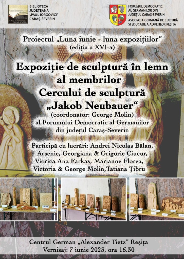 Expoziție de sculptură în lemn al membrilor Cercului de sculptură „Jakob Neubauer“ (coordonator: George Molin) al Forumului Democratic al Germanilor din județul Caraș-Severin. Participă cu lucrări: Andrei Nicolas Bălan, Arsenie, Georgiana & Grigorie Ciucur, Viorica Ana Farkas, Marianne Florea, Victoria & George Molin, Tatiana Țibru.