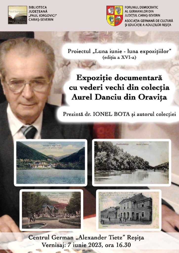 Expoziție documentară cu vederi vechi din colecția Aurel Danciu din Oravița. Prezintă dr. Ionel Bota și autorul colecției.