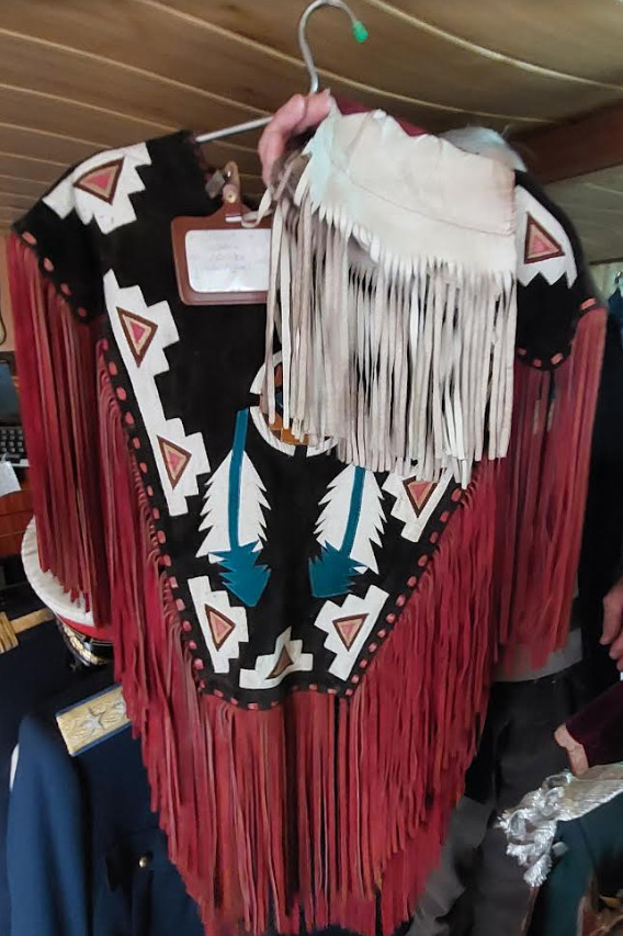 Leagăn de copii cu păpuși, mașină de scris, dactilografiat), șepci, pălării, curele, bretele.