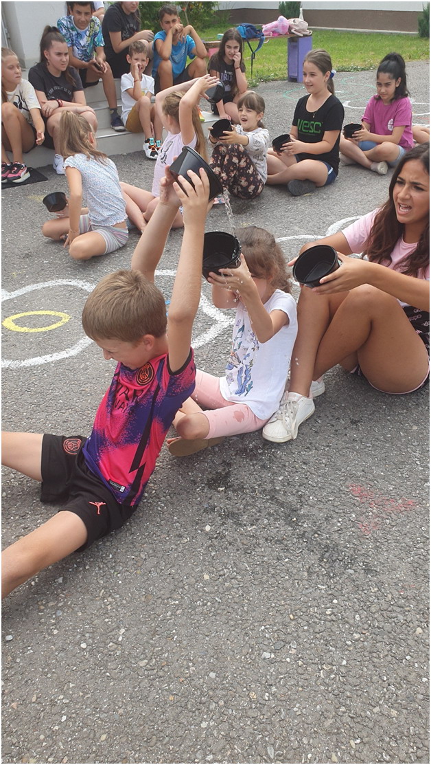 A doua zi – activități recreativ-sportive. Elevii s-au întrecut în diferite concursuri/ întreceri sportive jocuri de echipă, dar s-au și distrat jucându-se cu apa.