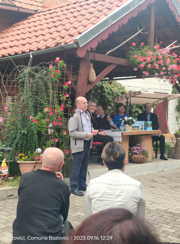 Cărțile prezentate: O apariție recentă: ,,LUMINA SLOVEI, biografie, dăscălie, poezie” – o lucrare inedită dedicată întregii vieți puse în slujba educației și a culturii a profesorului Iosif Băcilă, personalitate culturală contemporană marcantă a ,,Țării Almăjului”, cu ocazia împlinirii a 75 de ani de viață. Cităm din pagina de titlu a cărții: ,, Răspunzând celor 100 de întrebări puse de ANGELICA HERAC, IOSIF BĂCILĂ, la 75 de ani împliniți, își deschide sufletul pentru cei care vor să-l asculte și, mai ales, să-l citească „. Următoarea carte prezentată: ,,Valea Almăjului, oameni și fapte (limbă, istorie, credință și cultură românească)” volumul numărul cinci (,,cartea a cincea”, conform titlului), o deosebită și bogată lucrare antologică dedicată, așa cum se poate deduce din titlu, oamenilor de cultură cu nativitate în Valea Almăjului, ajunsă în anul 2022 la volumul cu numărul cinci. Autorii coordonatori ai acestei lucrări sunt Florina Maria Băcilă și Iosif Băcilă. Despre valoarea culturală a acestei lucrări, poetul Nicolae Sîrbu spunea în alocuțiunea sa că ea nu poate fi cuprinsă într-un anume număr de cuvinte, ea trebuie desprinsă din cronici bogate și multiple dedicate acestei deosebite creații. Unicitatea și caracterul excepțional al acestui act cultural, înfăptuit de Florina Maria Băcilă și Iosif Băcilă, poartă o însemnătate națională, confirmare a acestei afirmații, poate constitui și faptul că lucrarea a fost remarcată și solicitată, așa cum aflăm din spusele autorilor, de instituții prestigioase mondiale cum sunt Biblioteca municipală din Munchen și Biblioteca Universitară Harvard.