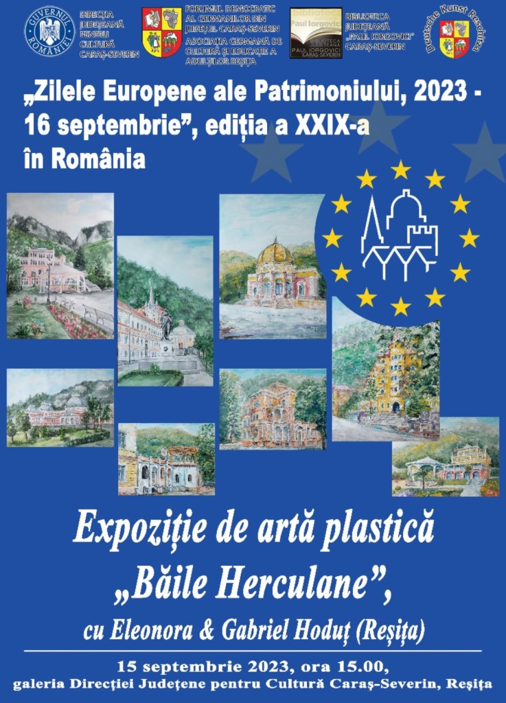 „Zilele Europene ale Patrimoniului, 2023 – 16 septembrie”, ediția a XXIX-a în România: Expoziție de artă plastică„Băile Herculane”, cu Eleonora & Gabriel Hoduț (Reșița).