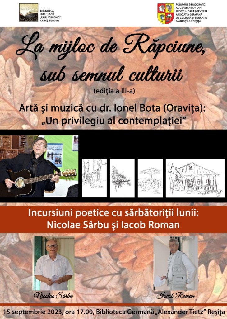 15 septembrie 2023, ora 17.00, Biblioteca Germană „Alexander Tietz“ Reșița: