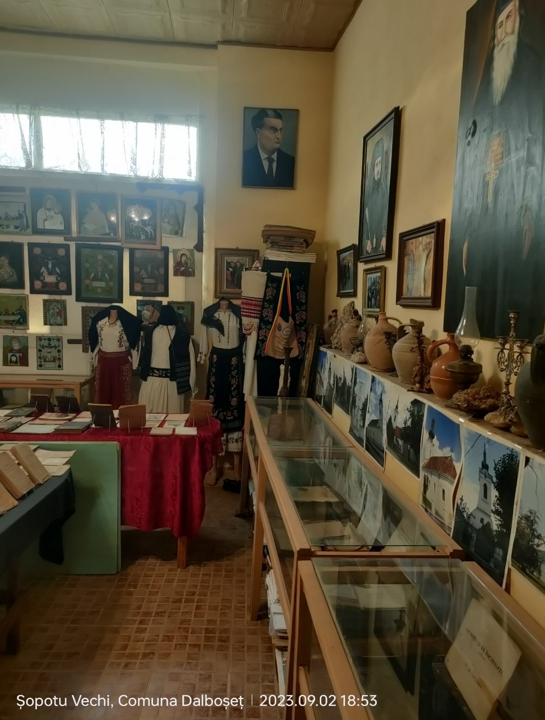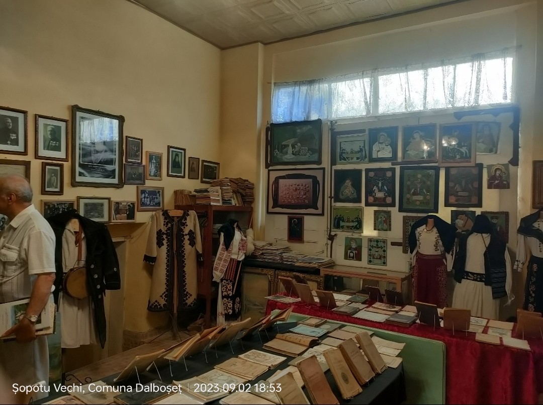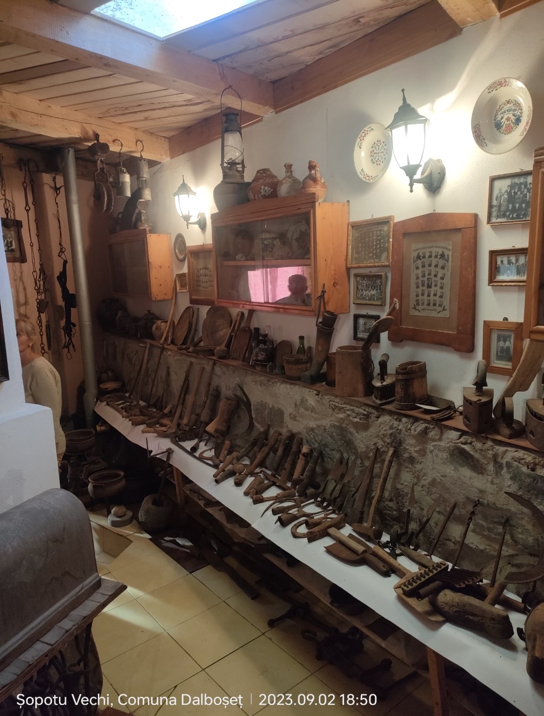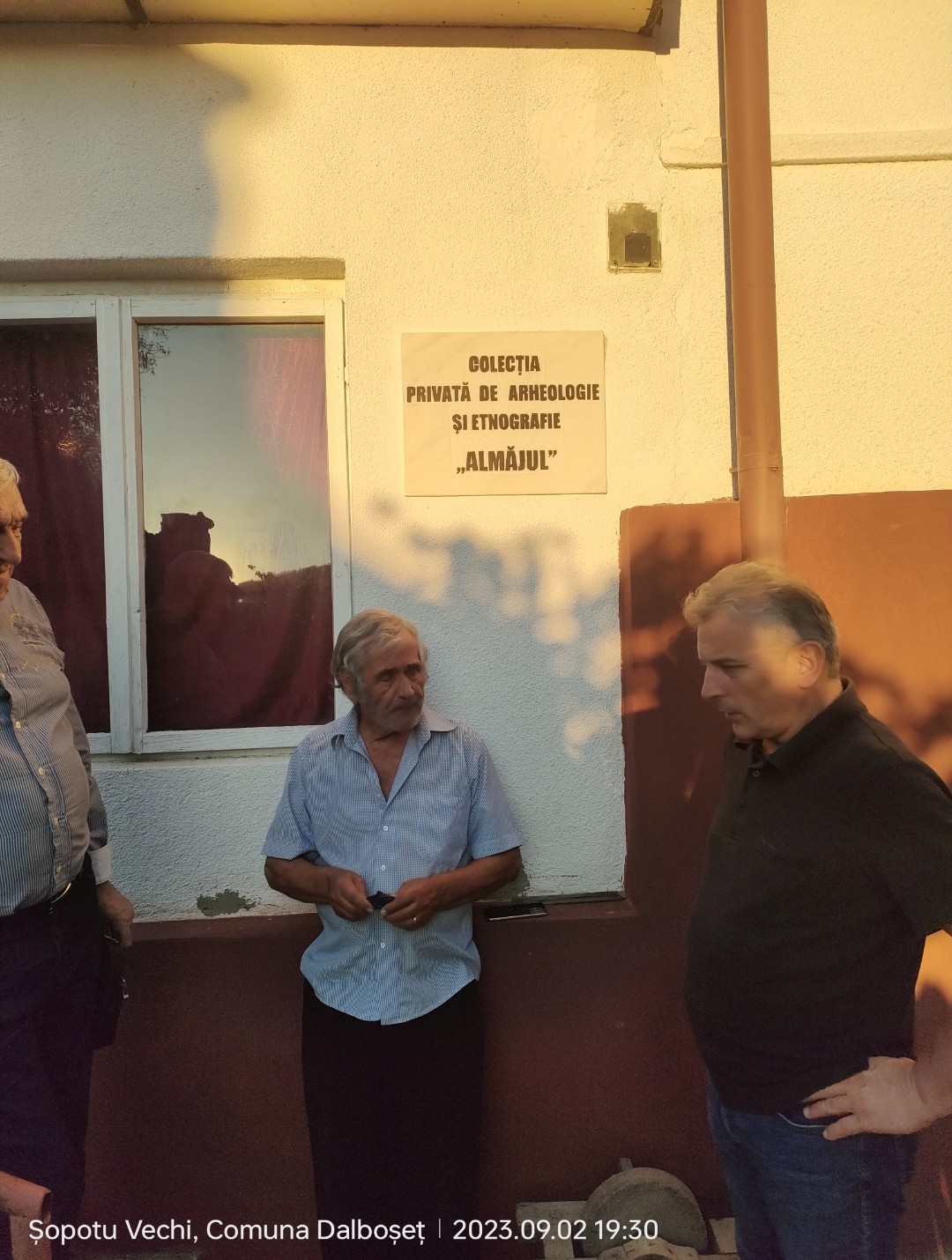 Următoarea entitate muzeală vizitată a fost Colecția privată de arheologie și etnografie ,,Almăjul”, aparținând lui Gheorghe Rancu din Șopotul Vechi. Înființat în anul 2011, de către profesorul Gheorghe Rancu Bodrog, muzeul deține în prezent peste 4000 de piese, colecționate pe parcursul a peste patruzeci de ani, ele fiind expuse pe diferite secțiuni reprezentative în cele trei încăperi ce constituie acest spațiu muzeal. Între exponate regăsim o mare varietate de obiecte de uz gospodăresc, diferite articole vestimentare, icoane pe sticlă, creații plastice, diverse publicații, manuale vechi, diferite tipărituri, articole artizanale, și multe, multe altele. Parafrazându-l pe Terențiu, aș spune că domnului Gheorghe Rancu nimic din ce este propriu unei societăți tradiționale nu-i este străin! Domnul profesor reușește și prin această inițiativă să aducă o contribuție majoră protejării și valorificării patrimoniului cultural local, conservării tradiţiilor şi valorilor perene ale culturii populare, oferind o marcă identității etnoculturale a satului românesc.