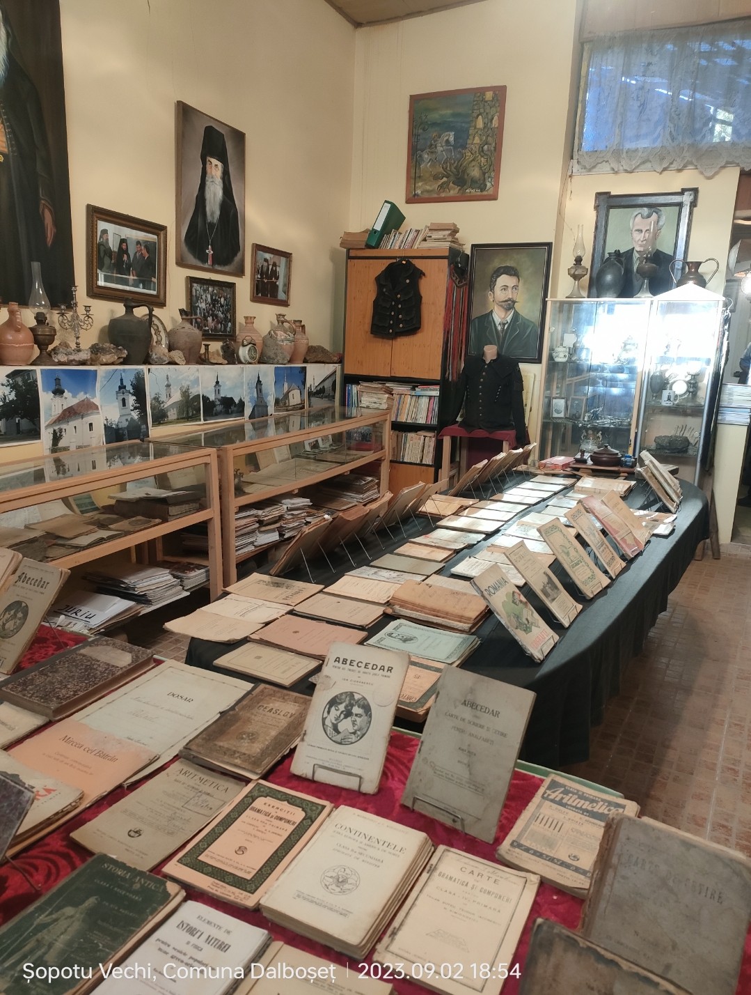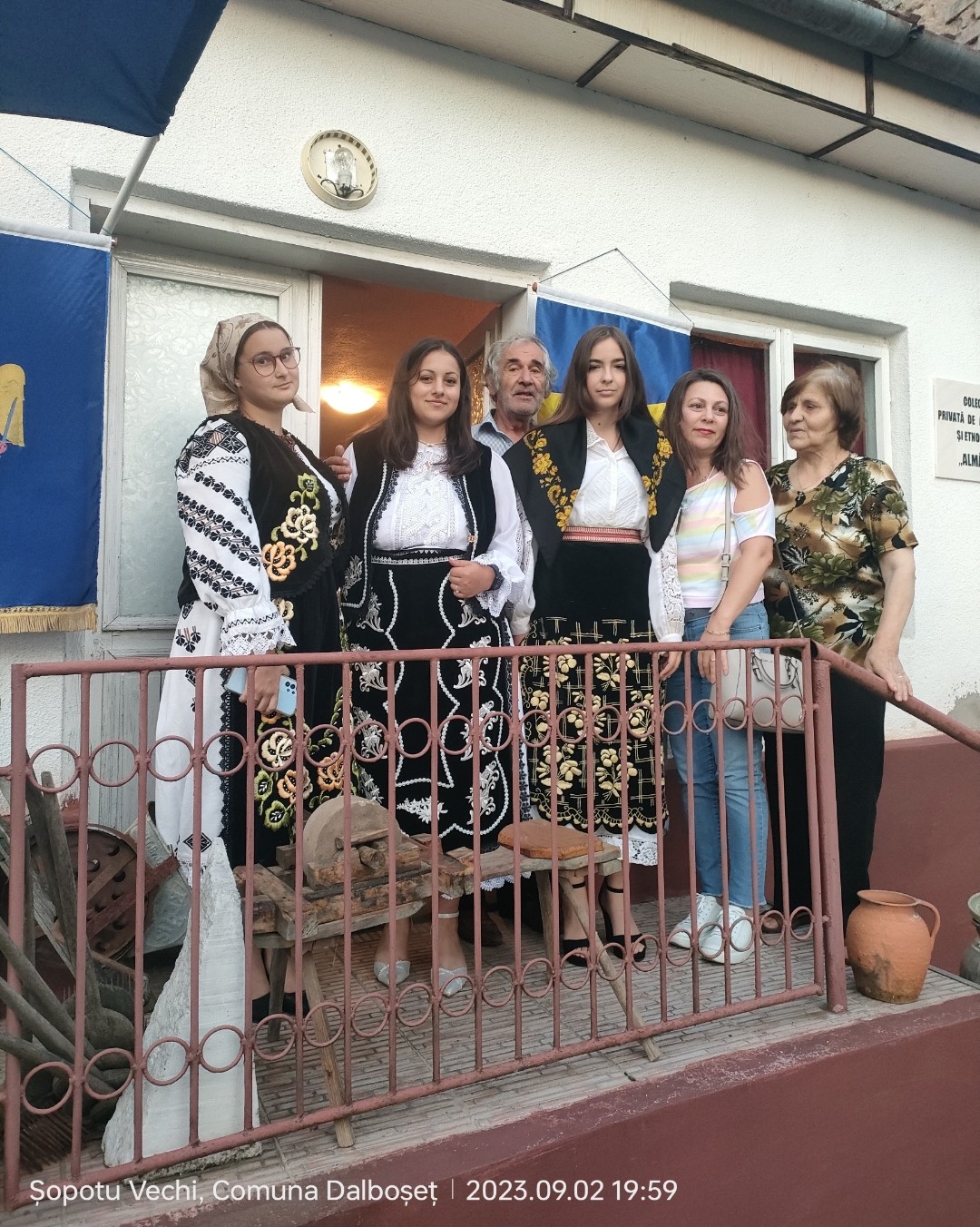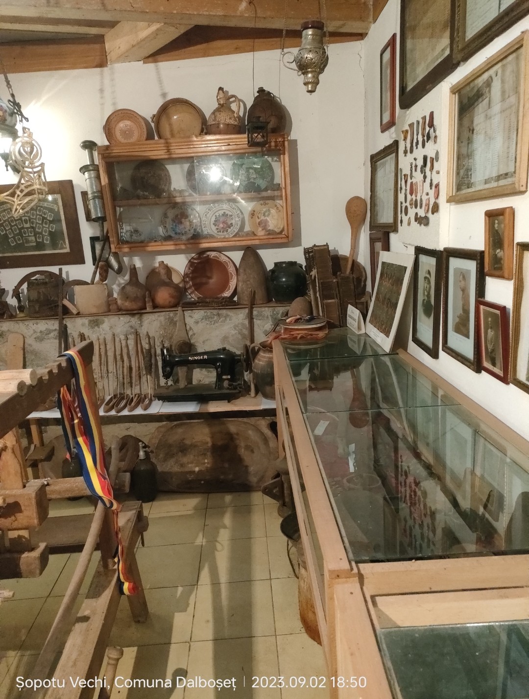 Următoarea entitate muzeală vizitată a fost Colecția privată de arheologie și etnografie ,,Almăjul”, aparținând lui Gheorghe Rancu din Șopotul Vechi. Înființat în anul 2011, de către profesorul Gheorghe Rancu Bodrog, muzeul deține în prezent peste 4000 de piese, colecționate pe parcursul a peste patruzeci de ani, ele fiind expuse pe diferite secțiuni reprezentative în cele trei încăperi ce constituie acest spațiu muzeal. Între exponate regăsim o mare varietate de obiecte de uz gospodăresc, diferite articole vestimentare, icoane pe sticlă, creații plastice, diverse publicații, manuale vechi, diferite tipărituri, articole artizanale, și multe, multe altele. Parafrazându-l pe Terențiu, aș spune că domnului Gheorghe Rancu nimic din ce este propriu unei societăți tradiționale nu-i este străin! Domnul profesor reușește și prin această inițiativă să aducă o contribuție majoră protejării și valorificării patrimoniului cultural local, conservării tradiţiilor şi valorilor perene ale culturii populare, oferind o marcă identității etnoculturale a satului românesc.