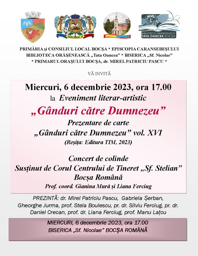 27 noiembrie 2023, ora 17.00, Centrul German „Alexander Tietz“ = Biblioteca Germană „Alexander Tietz“ Reșița: