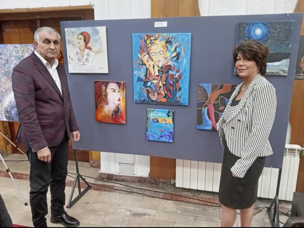 Înainte de a intra în miezul evenimentului, ne (de)conectăm, și limpezim privirea cu trecerea în revistă a tablourile expuse, într-o expoziție comună, a poetelor și pictorițelor Mirela Cocheci și Carmen Pinte, talente de referință și har creator uriaș, cu un generic sugestiv sub semnul ,,Culorilor de toamnă”, lucrări pline de expresivitate, armonie a culorilor, inspirate din cotidianul mirific al Văii Jiului dar și de dincolo de zare, care înfrumusețează și mai mult spațiul, Foaierul teatrului, în care timp de două ore vom respira liberi poezie și spirit românesc.