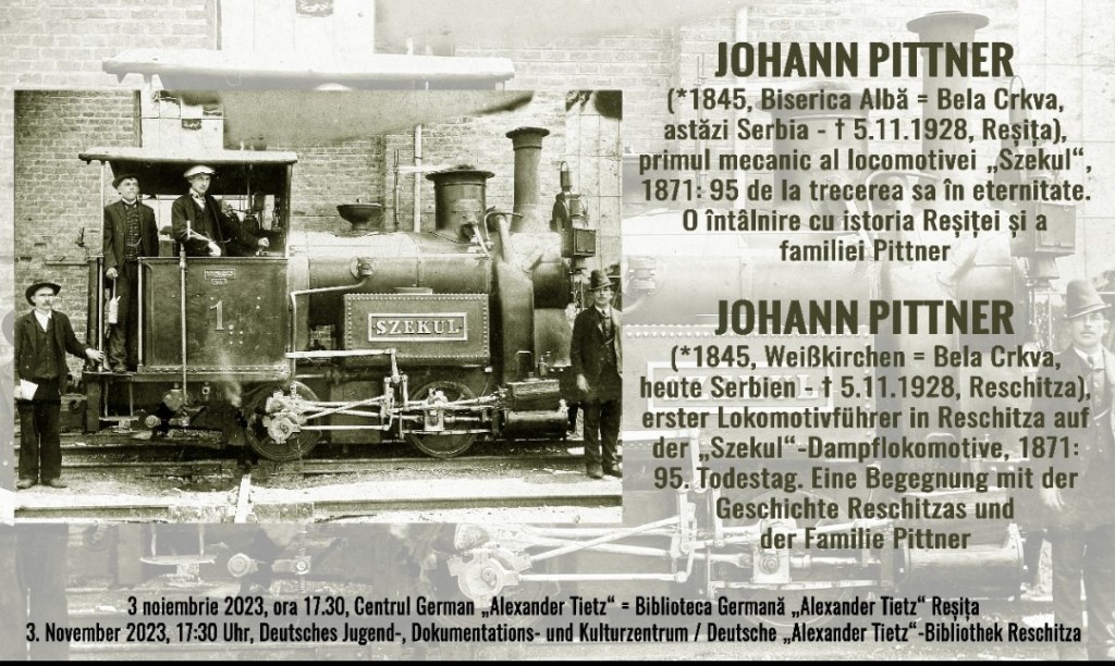 Johann Pittner (*1845, Weißkirchen = Bela Crkva, heute Serbien – † 5.11.1928, Reschitza), erster Lokomotivführer in Reschitza auf der „Szekul“-Dampflokomotive, 1871: 95. Todestag. Eine Begegnung mit der Geschichte Reschitzas und der Familie Pittner.
