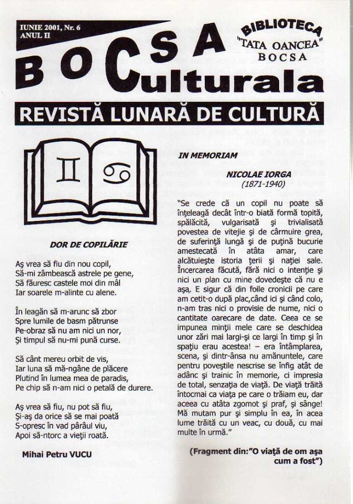 Revista „Bocșa culturală” a pășit cu încredere în cel de-al 25 – lea an al existenței sale!