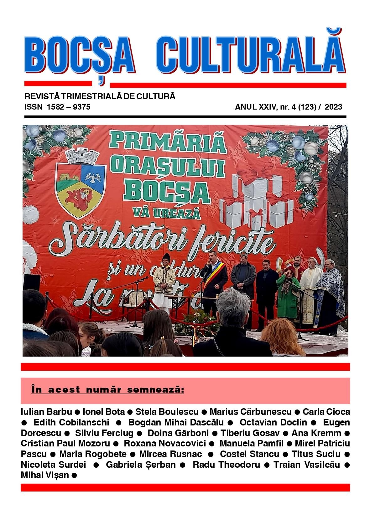 PS. Pe parcursul întregului an 2024 așteptăm mesajele cititorilor și colaboratorilor noștri cu privire la cei 25 de ani de revistă culturală la Bocșa, pentru ca, în anul următor, 2025, să cinstim această frumoasă „întâmplare” printr-o nouă tipăritură: „Bocșa culturală 2000 – 2025”.