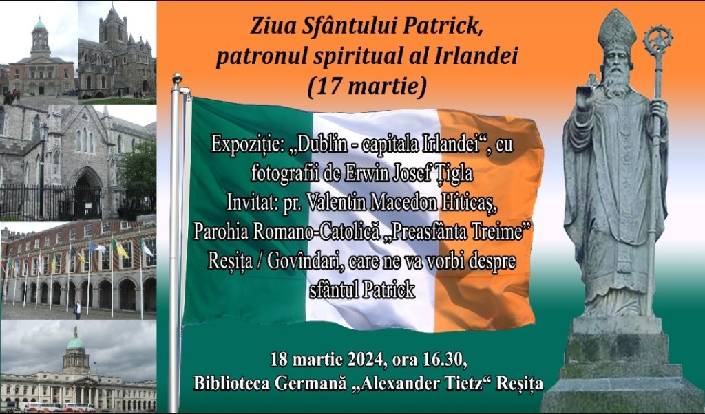 Invitat: pr. Valentin Macedon Hiticaș, Parohia Romano-Catolică „Preasfânta Treime” Reșița / Govîndari, care ne va vorbi despre Sfântul Patrick.