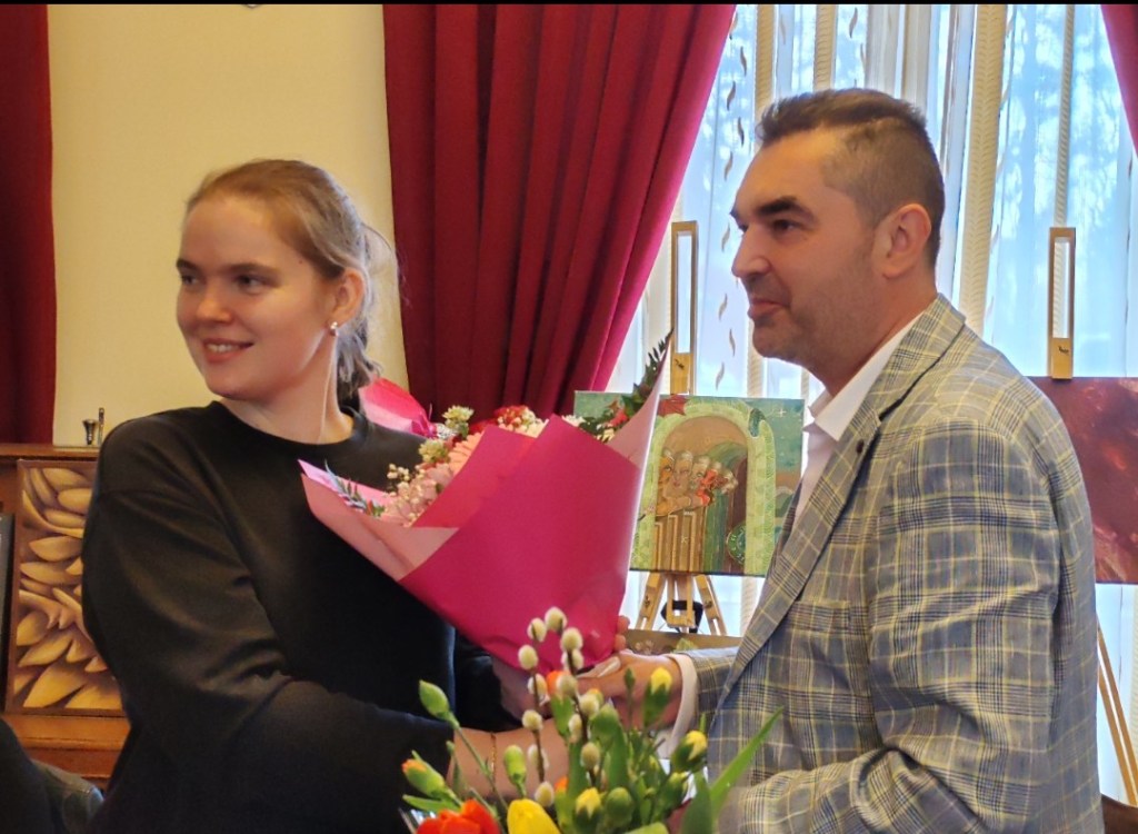 Prezentă la eveniment, profesor și artist plastic Ecaterina Tudor a fost cea care a prezentat-o pe tânăra pictoriță; a vorbit despre lucrările Sarei, despre etape și evoluție, despre Sara-Maria Ștețco, viitor artist de succes.