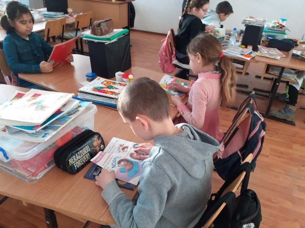 – Punctați-ne câteva activități mai deosebite desfășurate în cadrul bibliotecii pe care o coordonați. – Activitățile organizate, de exemplu cu ocazia Zilei Naționale a Lecturii au avut ca scop stimularea interesului pentru lectură, cultivarea gustului pentru lectură și frumos, exersarea limbajului şi a posibilităţilor de comunicare prin activităţi în parteneriat cu şcoala, stimularea responsabilităţii pentru carte. Participanți au fost elevii claselor Pregătitoare C, I C și a V-a B, coordonați de doamnele profesoare: Cizmaș Georgeta, Cherecheș Bianca și Goicovici Fabiola. Au citit lecturi în limba română și limba engleză, au făcut o vizită la biblioteca școlii pentru a vedea expoziția de carte cu volumele nou intrate în inventarul bibliotecii, au vizionat filmul: „Drumul Cărții”. Alte evenimente cuprinse în calendarul activității au fost: „Cartea preferată”, „Ghicește titlul”, „Continuă povestea…”, „Schimbă finalul lecturii”. În final, s-a realizat o expoziție cu creațiile plastice care au avut ca temă personaje din lecturile citite.