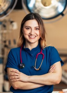 – Aveți și calități care vă deranjează? – Consider că este important să fii conștient de propriile tale puncte tari și slabe, existând aspecte ale personalității sau ale stilului de lucru care pot fi îmbunătățite sau ajustate pentru a te ajuta să devii cât mai eficient și mai echilibrat în cariera ta medicală. Fiind la început de drum, tendința este spre perfecționare, uneori ducând către epuizare. Parcursul unei cariere medicale este un proces continuu de învățare și creștere personală, pornind de la așteptările pe care le ai. Din fericire, ale mele au fost depășite de când am început rezidențiatul și există o bucurie constantă în fiecare dimineață și satisfacție deplină la final de program. Sunt foarte fericită cu alegerea făcută și sfătuiesc studenții să își aleagă specialitatea la rezidențiat după propria plăcere și dorință. Dacă există șansa să nu fie satisfăcuți cu alegerea făcută, pot oricând să și-o schimbe. Cred că dacă nu riști, nu câștigi!