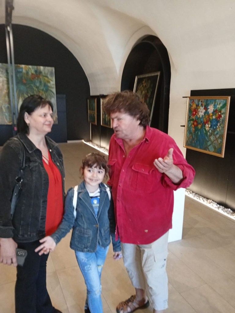 Pe omul și pictorul de excepție Mihai Teodor Olteanu îl cunosc din zilele fierbinți ale Revoluției din 1989, când orașul era devastat de fluturii de noapte și ,,bubulii” trăgeau în neștire cu gloanțe de rouă în privighetorile de pe treptele Catedralei din Timișoara. Dar odată cu trecerea implacabilă a unui timp care nu ne mai aparține, ne vedem din ce în ce mai rar, preocupările cotidiene ale fiecăruia ne limitează oarecum entuziasmul de a fi mereu acolo unde actul de creație de bună calitate ne cheamă. Mihai Teodor Olteanu, este un artist de un talent debordant, în picturile sale descoperim lumină și o cromatică de culori fascinantă specifică unei școli de tradiție în domeniu, respectiv Institutul de Arte Plastice din Cluj Napoca, unde i-a avut profesori pe Aurel Ciupe,Teodor Botiș, Mircea Crișan și prieten cu Horia Bernea cu care împarte multe paradigme comune, cum ar fi credința în Dumnezeu și iubirea de natură. Regalist convins, pictează tablouri și icoane care impresionează chiar și pe Majestatea Sa Regele Mihai, cu prilejul unei vizite la Timișoara. Dar dincolo de toate (dez)amăgirile cu iz de suspiciuni rezonabile ,,Îngerul ” își continuă cu voluptate drumul spre împlinirea idealurilor sale și îmbrățișează fiecare răsărit de soare care-l găsește în fața șevaletului, pictând, idei, gânduri și vise, cu emoția unui copil ce a descoperit o stea în bobul de rouă!