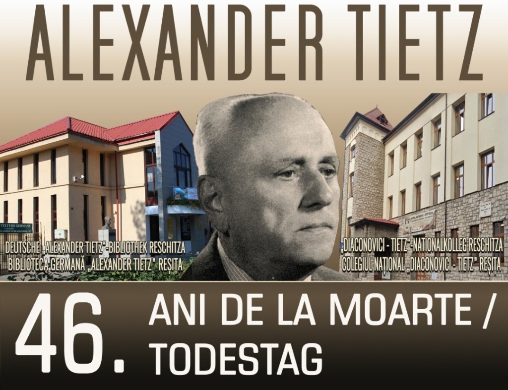 Binecunoscutul etnograf, pedagog și scriitor reșițean Alexander Tietz este reprezentantul cel mai marcant al mișcării culturale germane din secolului XX în Banatul Montan. El a editat în timpul vieții un număr de cinci cărți în limba germană, care conțin legende și povestiri culese de la toți locuitorii acestui spațiu. A scris totodată multe articole în presa germană și română a timpului, între care Scrisorile de la sălaș se disting prin acuratețea observațiilor și o impecabilă stilistică literară în limba română. Pe timpul vieții i-au apărut în capitală un număr de 5 proiecte editoriale, iar postum i-au apărut 8 cărți, editate la Reșița, Timișoara și București. De asemenea, i-au fost ecranizate câteva povești pentru o înregistrare pe disc. Alexander Tietz a fost unul dintre cei mai recunoscuți pedagogi germani reșițeni din același secol, care a insuflat elevilor săi dragostea pentru locul natal, pentru cultură, turism și protecția mediului. Numele său este purtat atât de Colegiul Național „Diaconovici – Tietz” din Reșița, cât și de Biblioteca Germană „Alexander Tietz” din cartierul reșițean Lunca Pomostului. Anul acesta, o expoziție documentară deschisă la Biblioteca Germană „Alexander Tietz” evocă personalitatea polivalentă a celui care a fost primul membru reșițean al Uniunii Scriitorilor din țara noastră, Cetățean de onoare post mortem al Reșiței sale natale din 2004.