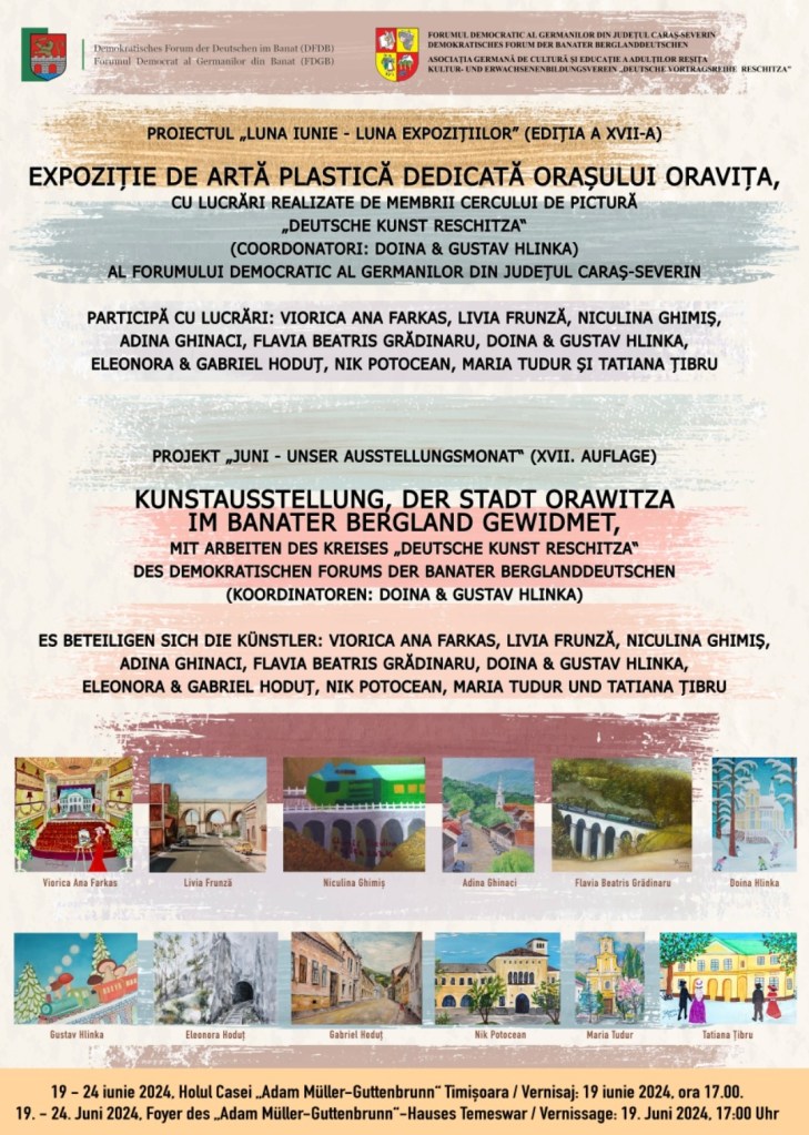Kunstausstellung, der Stadt Orawitza im Banater Bergland gewidmet, mit Arbeiten des Kreises „Deutsche Kunst Reschitza“ des Demokratischen Forums der Banater Berglanddeutschen (Koordinatoren: Doina & Gustav Hlinka). Es beteiligen sich die Künstler: Viorica Ana Farkas, Livia Frunză, Niculina Ghimiș, Adina Ghinaci, Flavia Beatris Grădinaru, Doina & Gustav Hlinka, Eleonora & Gabriel Hoduț, Nik Potocean, Maria Tudur und Tatiana Țibru.