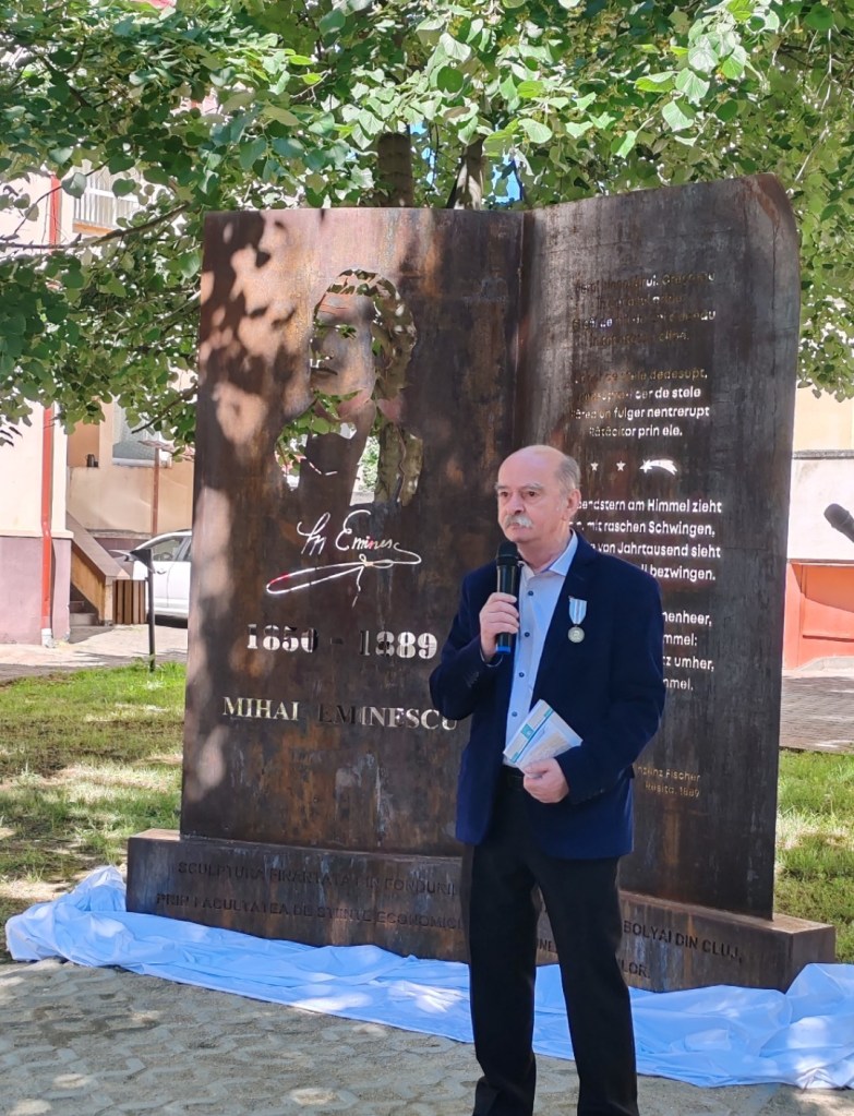 Sâmbătă, 15 iunie 2024, la 135 de ani de la plecarea în veșnicie a poetului național Mihai Eminescu, în curtea Centrului Universitar UBB din Reșița a avut loc un eveniment remarcabil: dezvelirea monumentului „Ansamblu omagial Eminescu” realizat de artistul plastic Alexandru Podea.