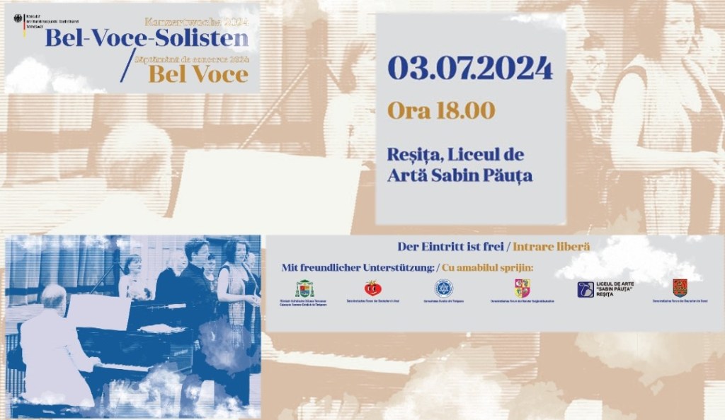 3. Juli 2024, 18:00 Uhr, Reschitza, „Lyra“-Saal des Kunstlyzeums „Sabin Păuța“ / 18:00 Uhr: