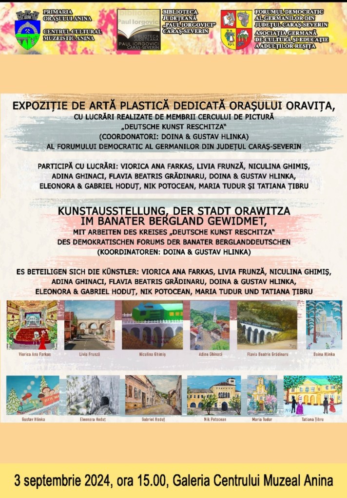 Kunstausstellung, der Stadt Orawitza im Banater Bergland gewidmet, mit Arbeiten des Kreises „Deutsche Kunst Reschitza“ des Demokratischen Forums der Banater Berglanddeutschen (Koordinatoren: Doina & Gustav Hlinka). Es beteiligen sich die Künstler: Viorica Ana Farkas, Livia Frunză, Niculina Ghimiș, Adina Ghinaci, Flavia Beatris Grădinaru, Doina & Gustav Hlinka, Eleonora & Gabriel Hoduț, Nik Potocean, Busuioc Puiu, Maria Tudur und Tatiana Țibru.
