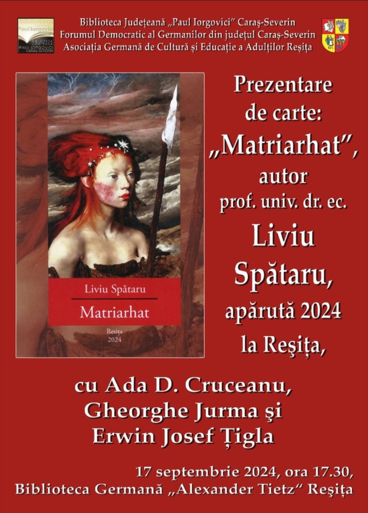 Prezentare de carte. Autorul prof. dr. ec. Liviu Spătaru își prezintă ultima apariție editorială: „Matriarhat“, apărut 2024 la Reșița.