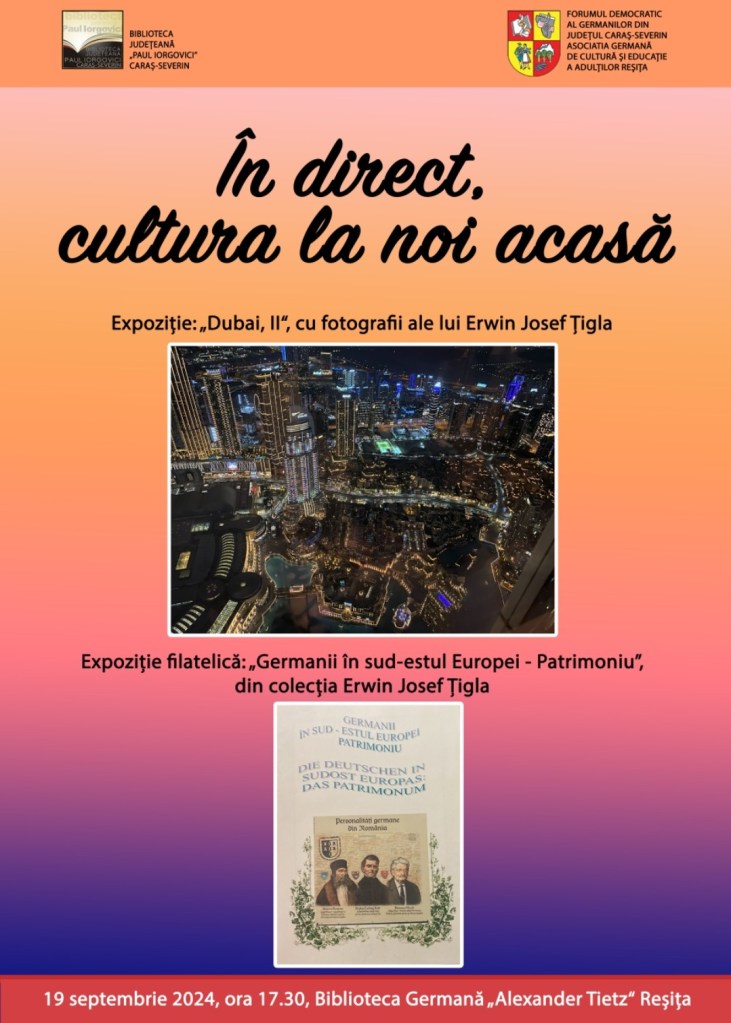 19 septembrie 2024, ora 17.30, Centrul German „Alexander Tietz“ = Biblioteca Germană „Alexander Tietz“ Reșița: